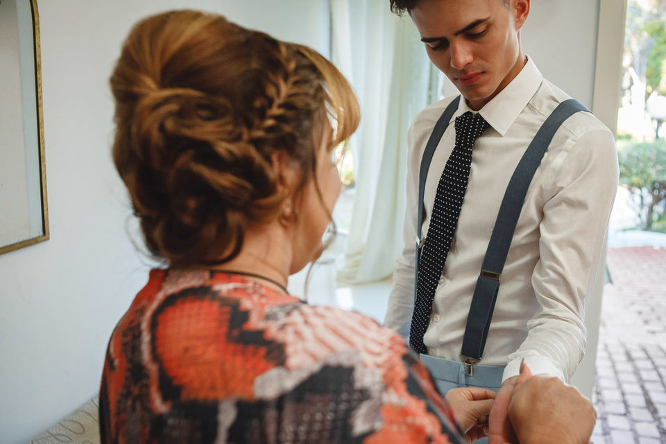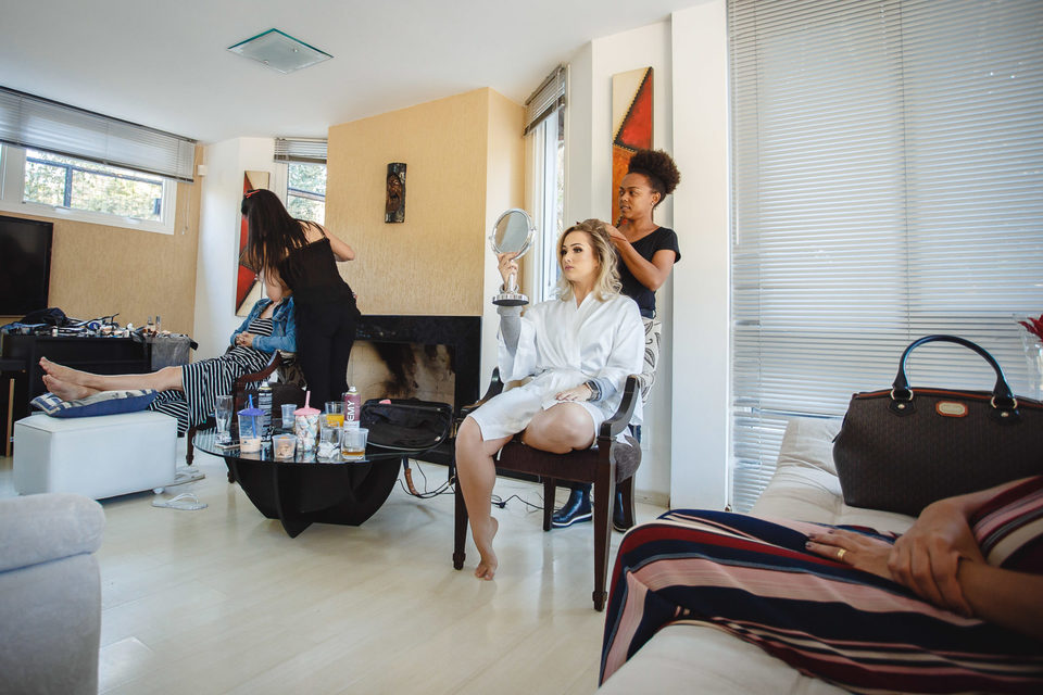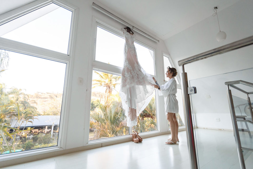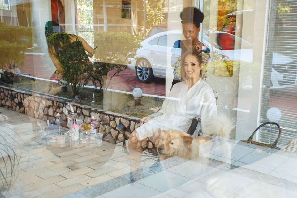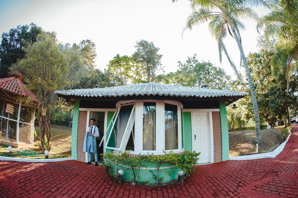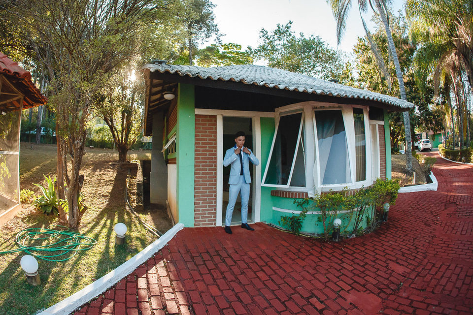 Polyana e Ruan escolheram a casa dos pais para se arrumarem em um condomínio em Esmeraldas - MG, bem próximo a BH, lugar onde eles se sentiam a vontade, em uma tarde rodeados de amigos e familiares, se arrumaram no aconchego do lar. Com um lindo céu azul e uma vista maravilhosa, com cheirinho de roça, já que casaram em uma capelinha do lado de um curral.