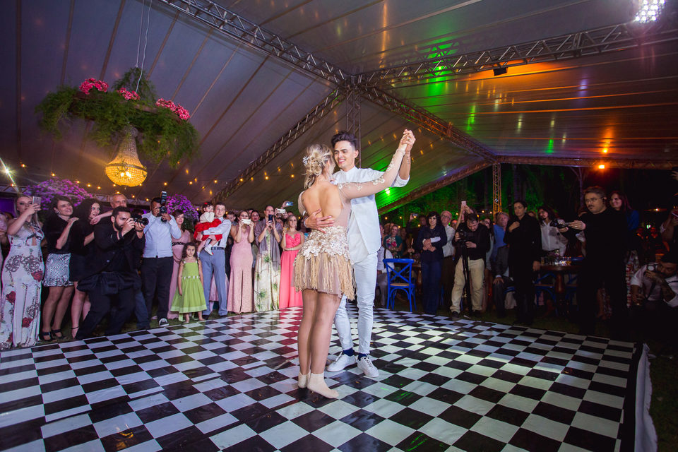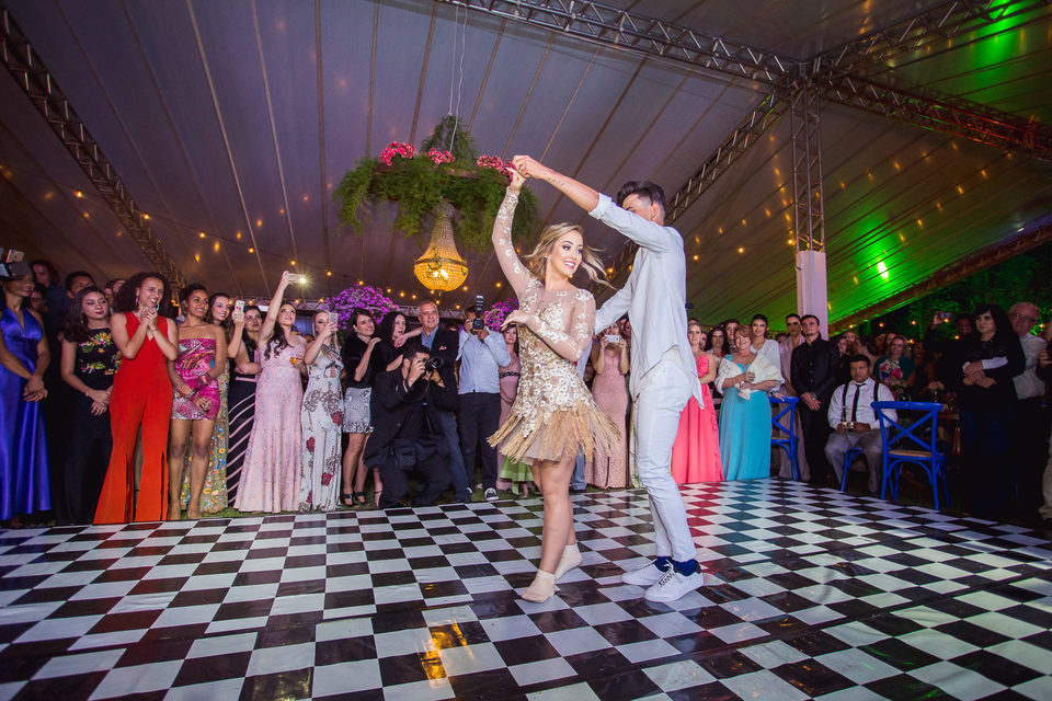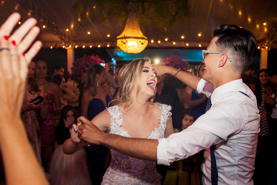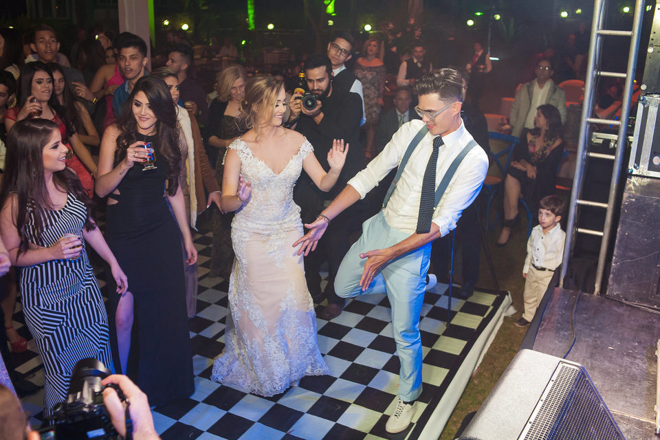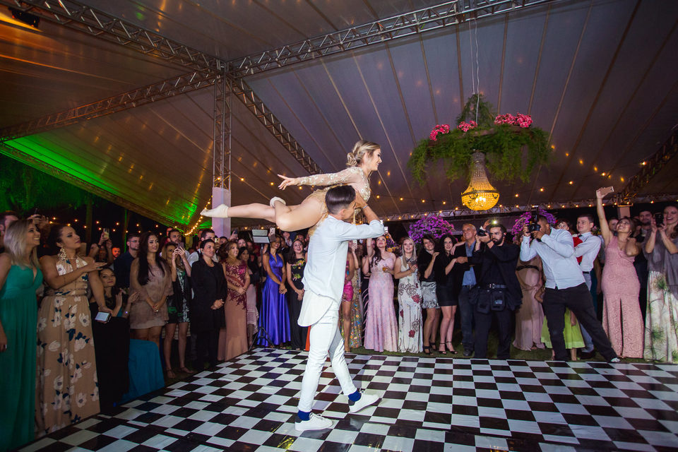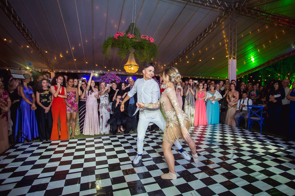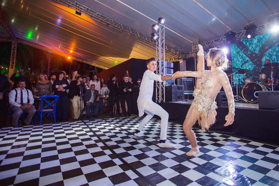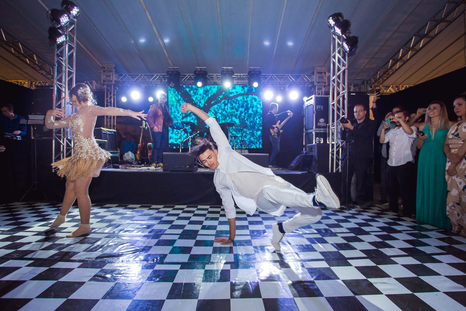 Polyana é bailarina e Ruan professor de street dance, um casal jovem, alegre e super criativo. Dançaram muito na festa de casamento deles.