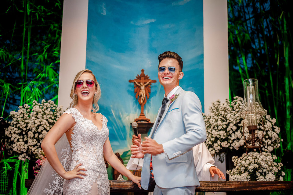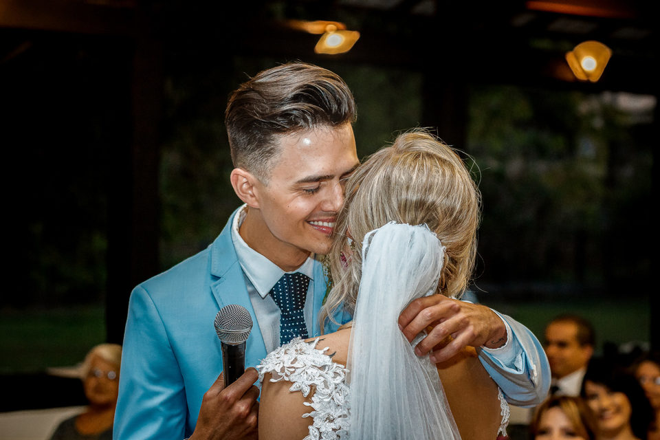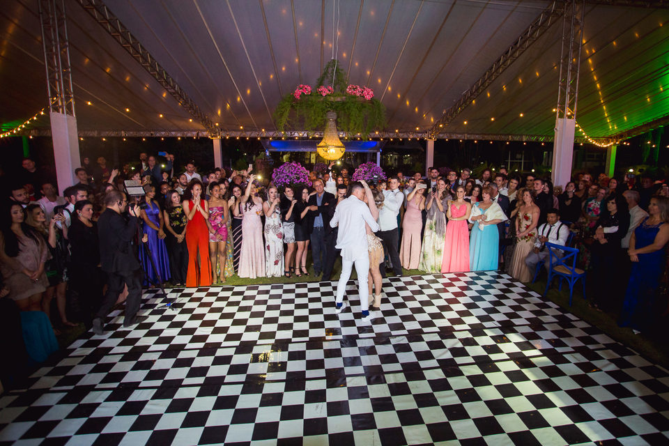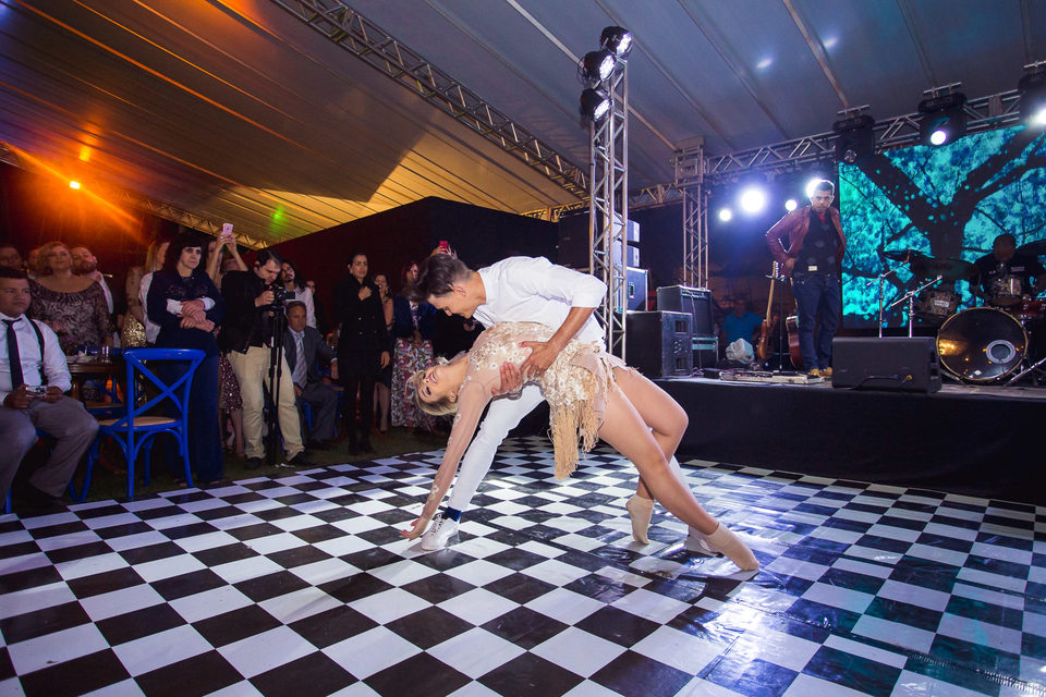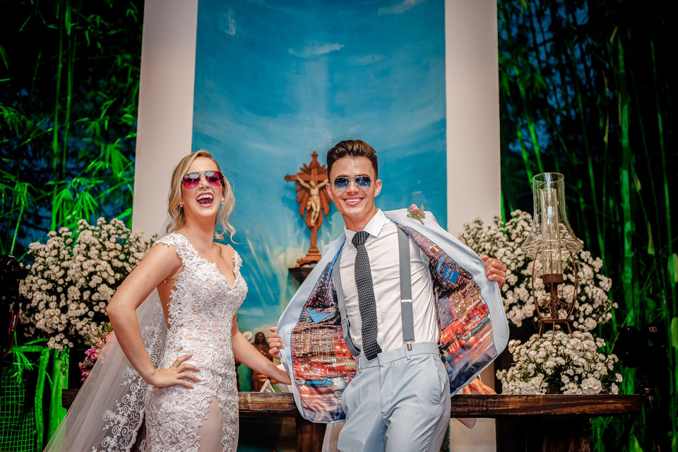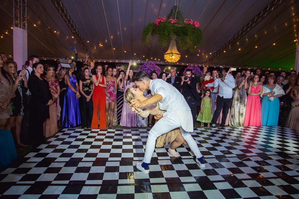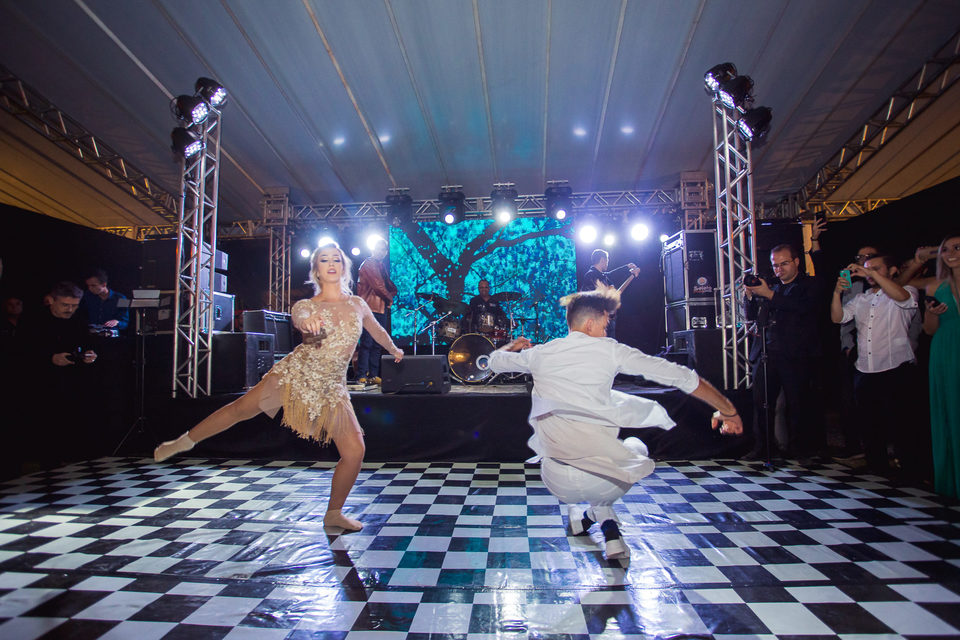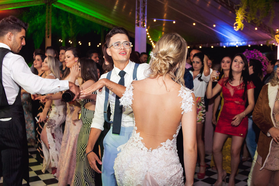 Polyana é bailarina e Ruan professor de street dance, um casal jovem, alegre e super criativo. Dançaram muito na festa de casamento deles.