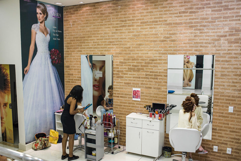 Chegou o tão esperado dia 19 de Maio, a Stella super tranquila foi com a mãe e com algumas "mulheres próximas" a ela para o salão se arrumar. Mas ela mesma fez a sua make e dia da noiva em Ibirité, e se arrumou em um salão de beleza próximo a Matriz de Nossa Senhora das Graças, mais conhecida como a Igreja Azul de Ibirité, que é maravilhosa, diga-se de passagem.