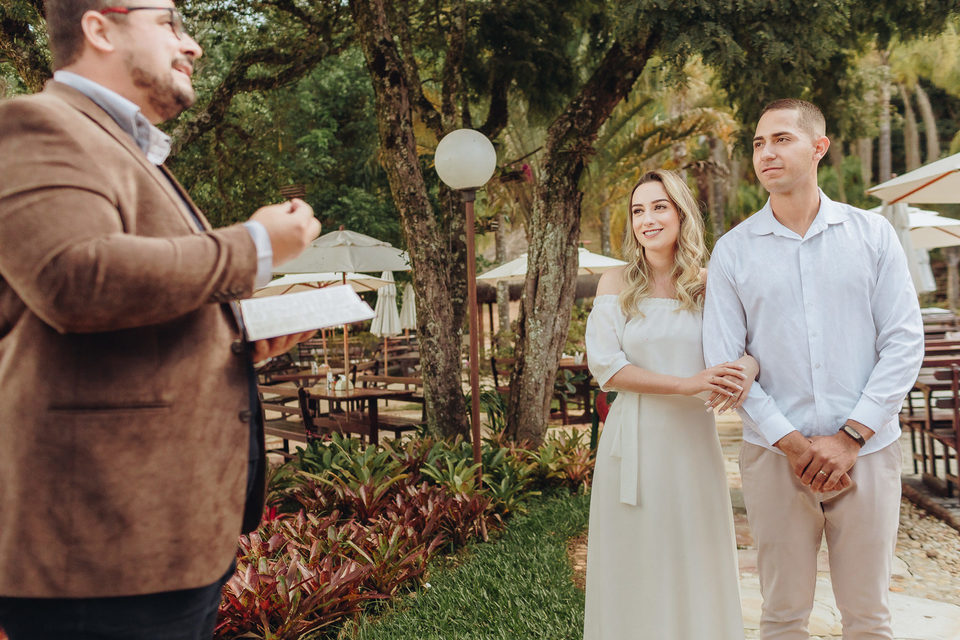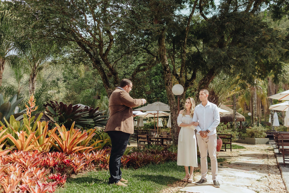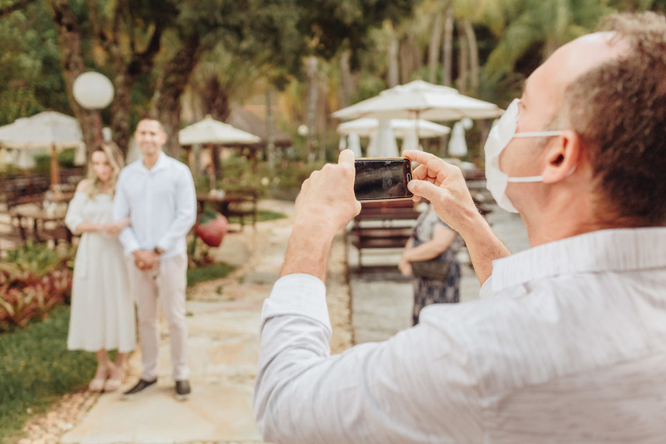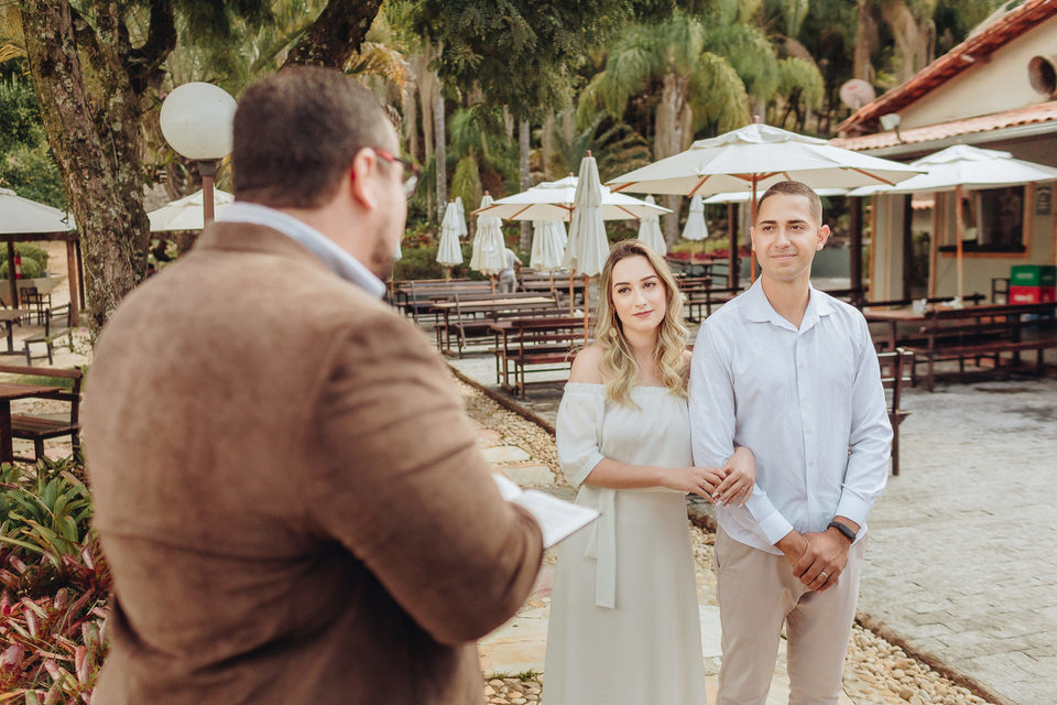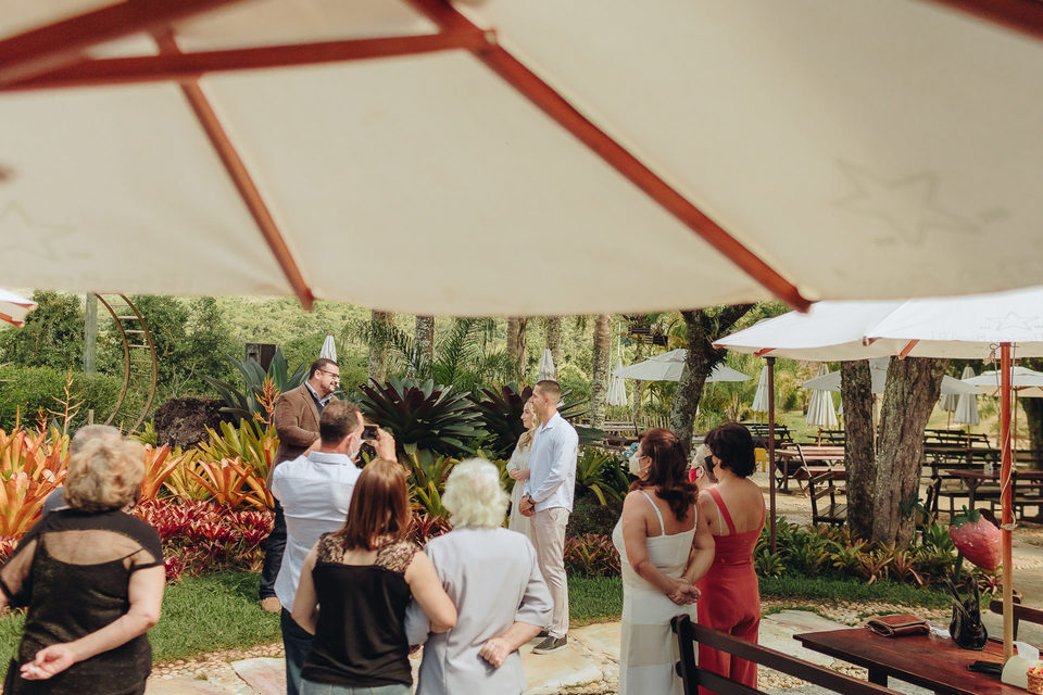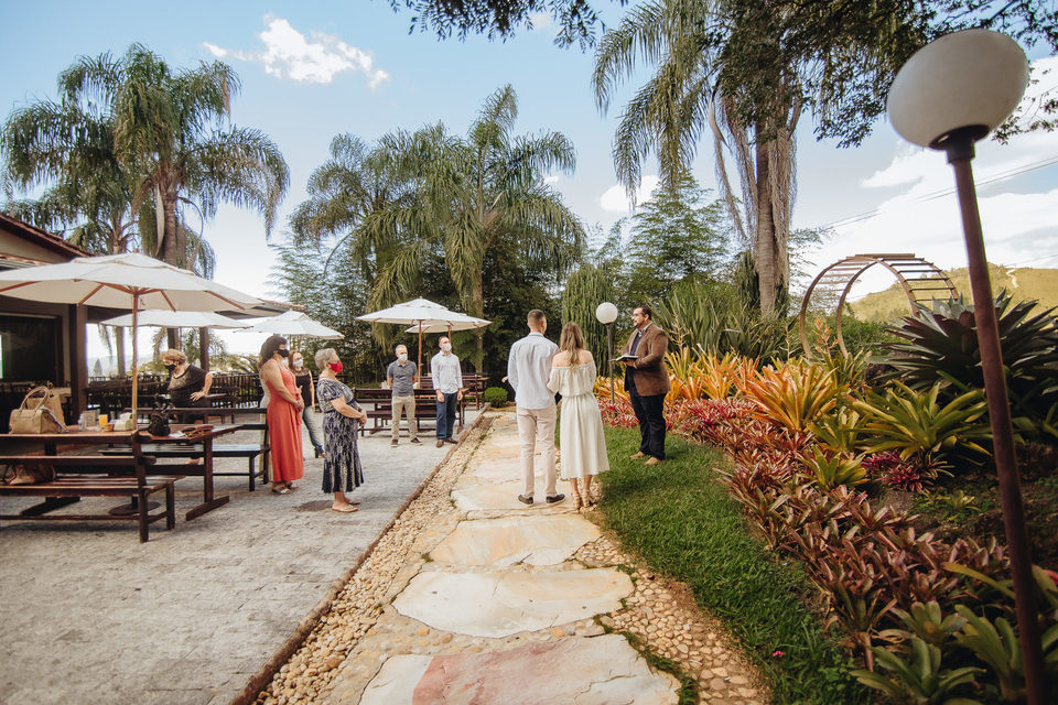 Depois do casamento civil no cartório, nos encontramos no restaurante Rancho do Boi, em um lindo dia de sol, com céu bem azul. Digno daqueles dias escolhidos a dedo pela mão do criador. As pessoas que estavam presentes também eram escolhidas a dedo por conta do infeliz momento de pandemia que estamos vivemos. Mas os poucos que alí estavam presentes eram os mais importantes, e isso fez com que o clima fosse leve e de muito amor e carinho ao nosso casal.