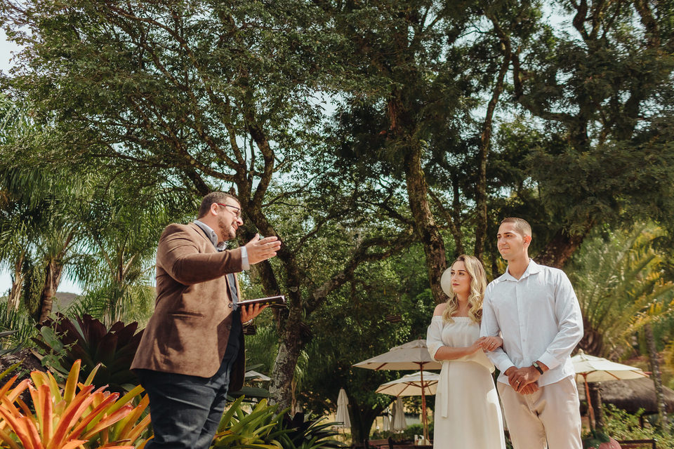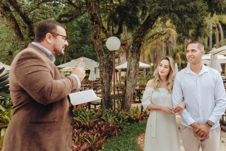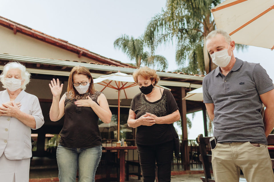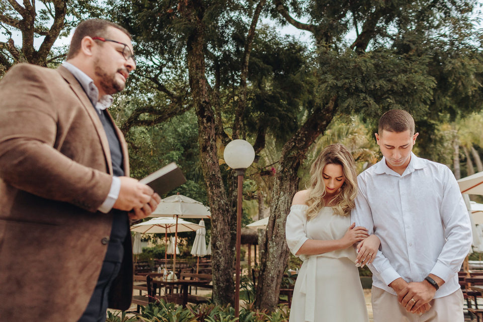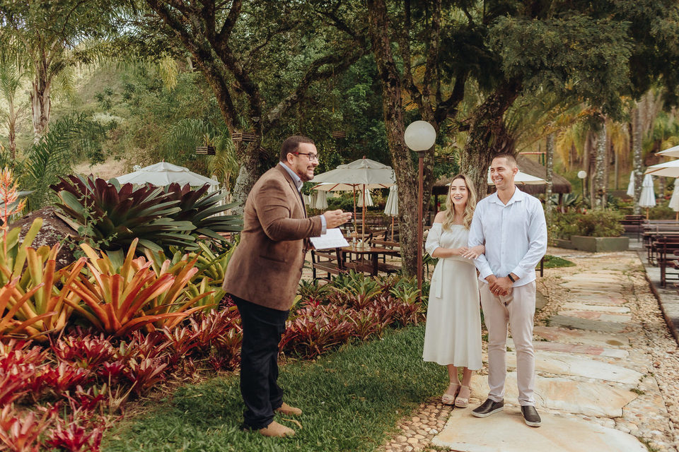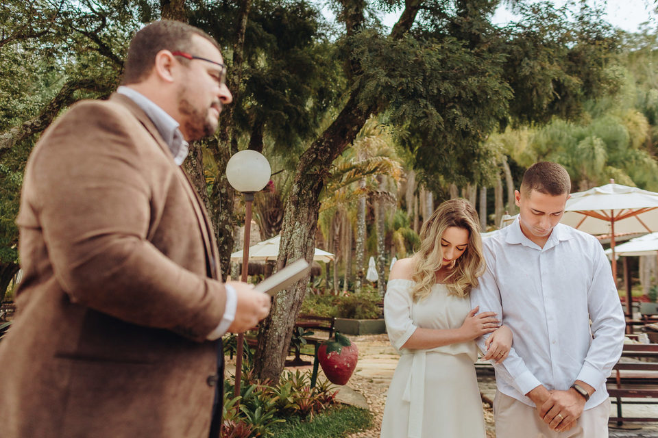 Depois do casamento civil no cartório, nos encontramos no restaurante Rancho do Boi, em um lindo dia de sol, com céu bem azul. Digno daqueles dias escolhidos a dedo pela mão do criador. As pessoas que estavam presentes também eram escolhidas a dedo por conta do infeliz momento de pandemia que estamos vivemos. Mas os poucos que alí estavam presentes eram os mais importantes, e isso fez com que o clima fosse leve e de muito amor e carinho ao nosso casal.