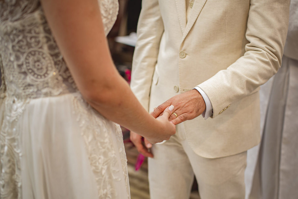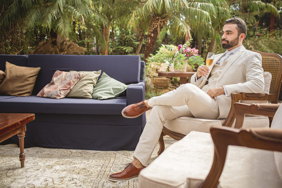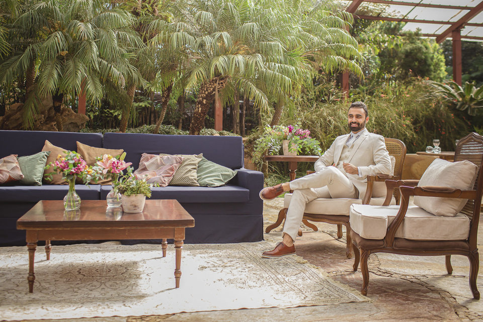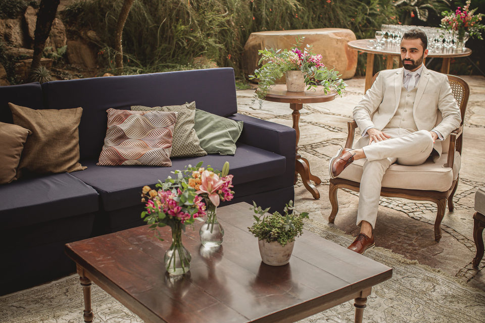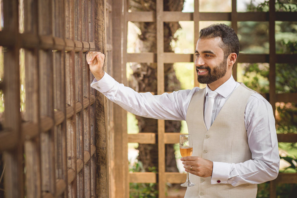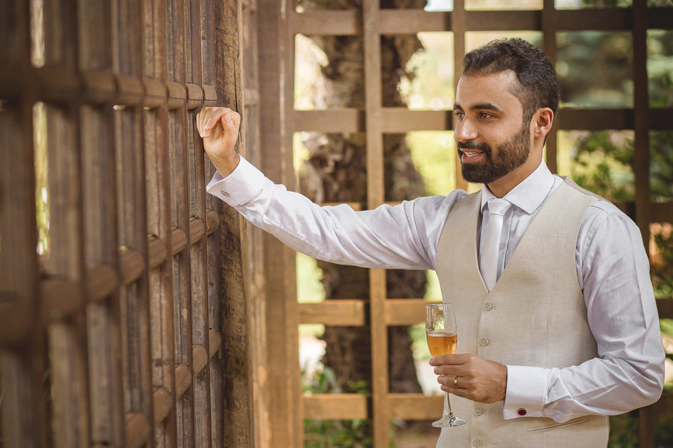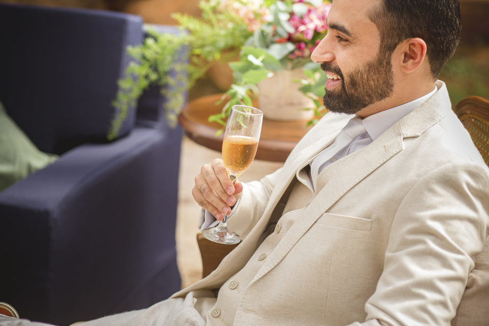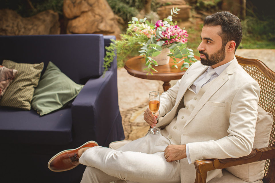 O Matheus chegou sozinho carregando seu lindo terno bege, poucas vezes vi um terno de noivo tão lindo quanto o dele. Era simples, mas de extremo bom gosto. Decorado apenas com alguns raminhos e uma flor clara, ficou surpreendentemente bonito e adequado para a situação, que era um casamento em local aberto com por do sol. Ele também tomou um espumante enquanto esperava o momento, não aparentava estar nervoso, mas de forma discreta escondia a ansiedade em ver ela toda linda entrando por aquele corredor.