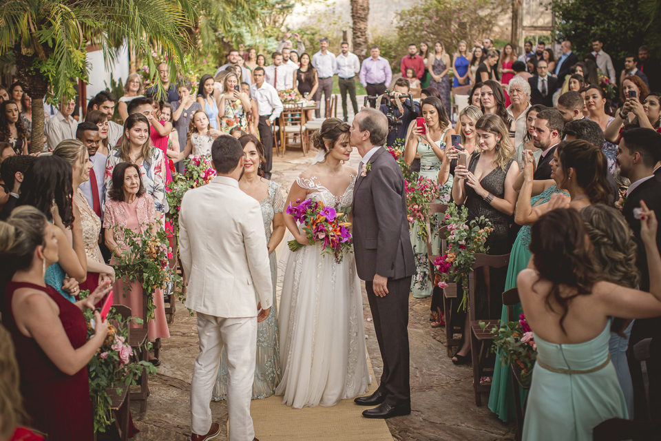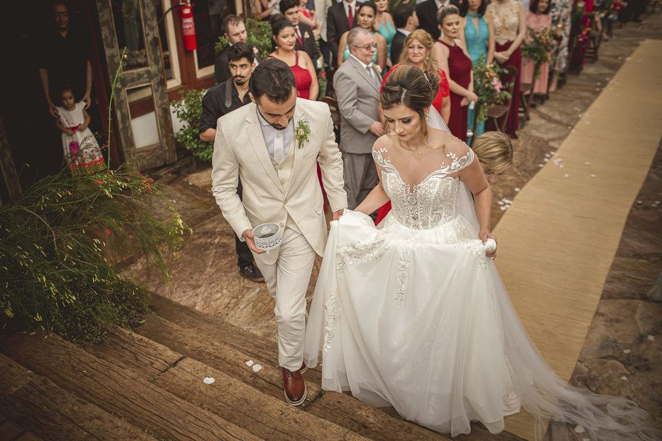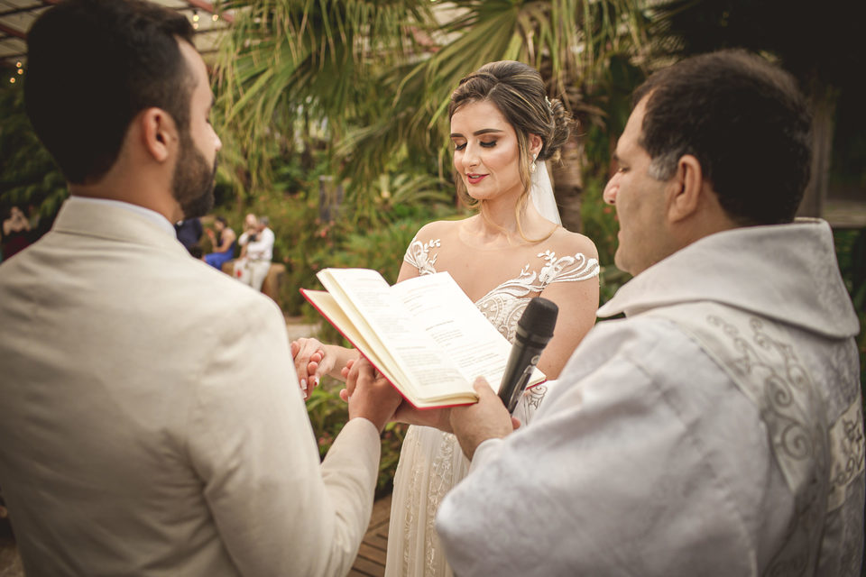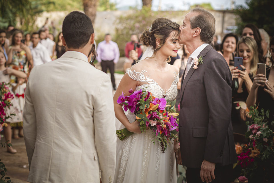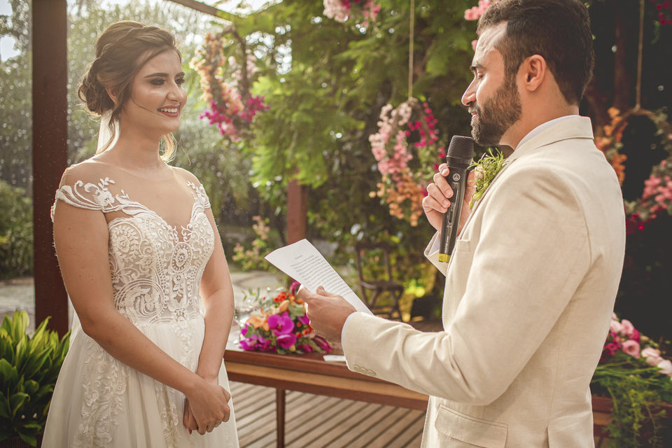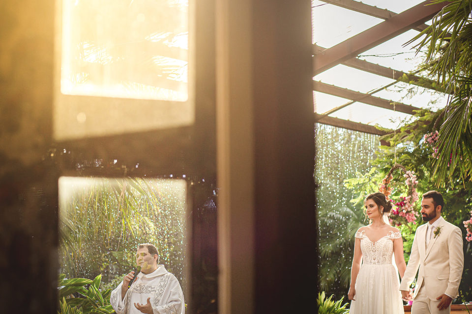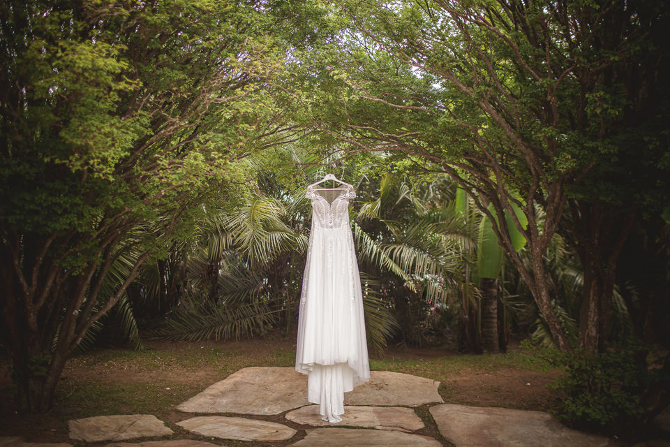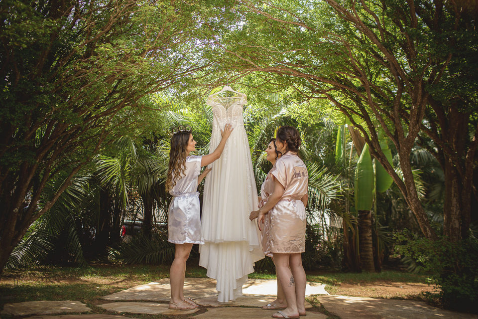 Foi exatamente essa palavra que resumiu o casamento da Rayra e do Matheus. O dia amanheceu lindo, uma manhã ensolarada de céu azul. A Rayra se arrumou lá mesmo, no local da cerimônia que foi no Espaço província. Com sua irmã e mãe por perto, elas fizeram com que este momento fosse memorável, descontraído e de belas risadas espontâneas. Tomaram seu espumante no jardim e caminharam para bater um papo enquanto apreciavam o vestido da noiva pendurado na paisagem de uma das jaboticabeiras. Neste momento além de registrar ela, aproveitamos para fotografar a decoração de casamento que ficou impecável, mas calma, vocês já vão ver nas fotos.