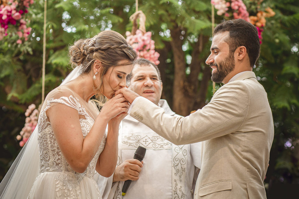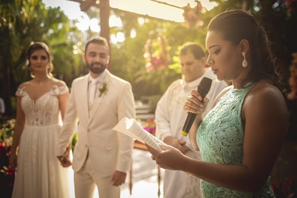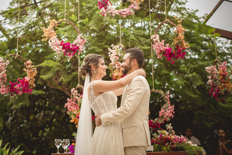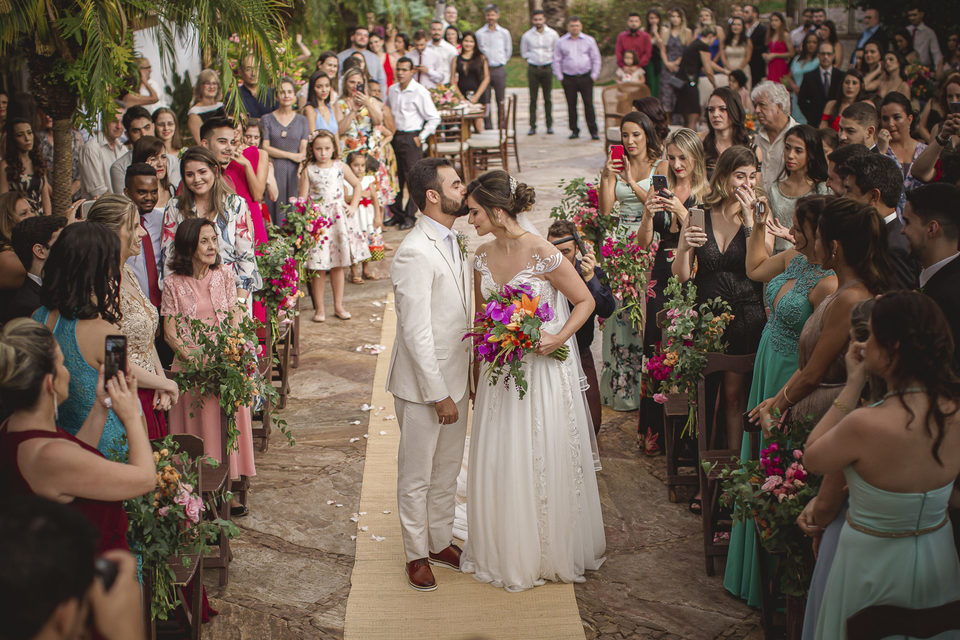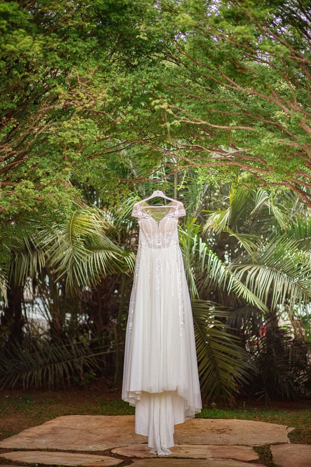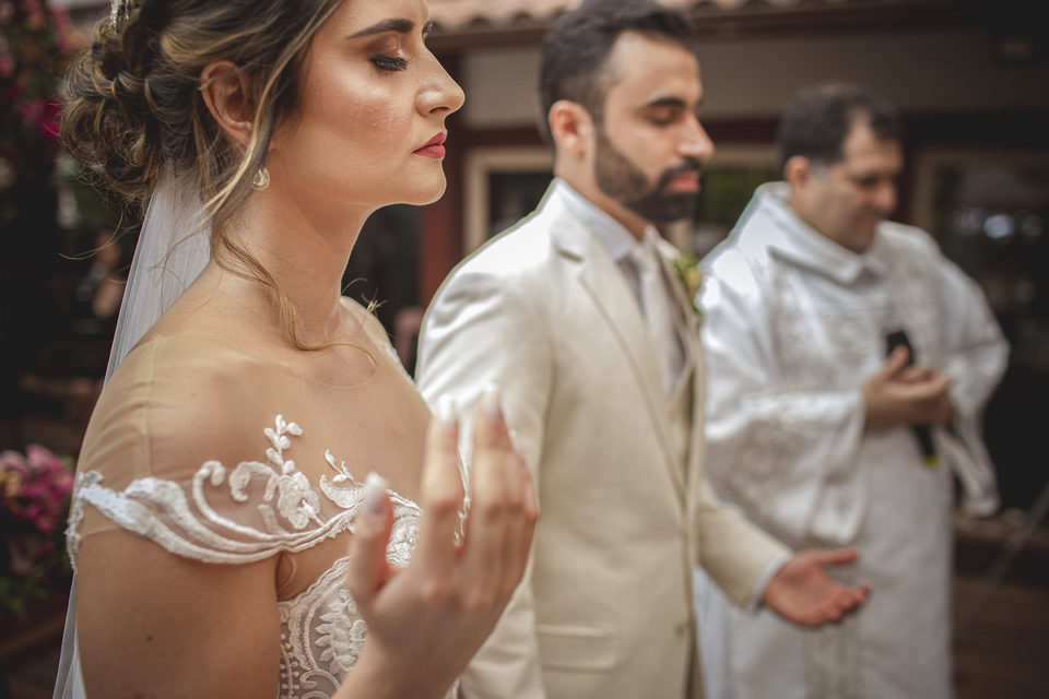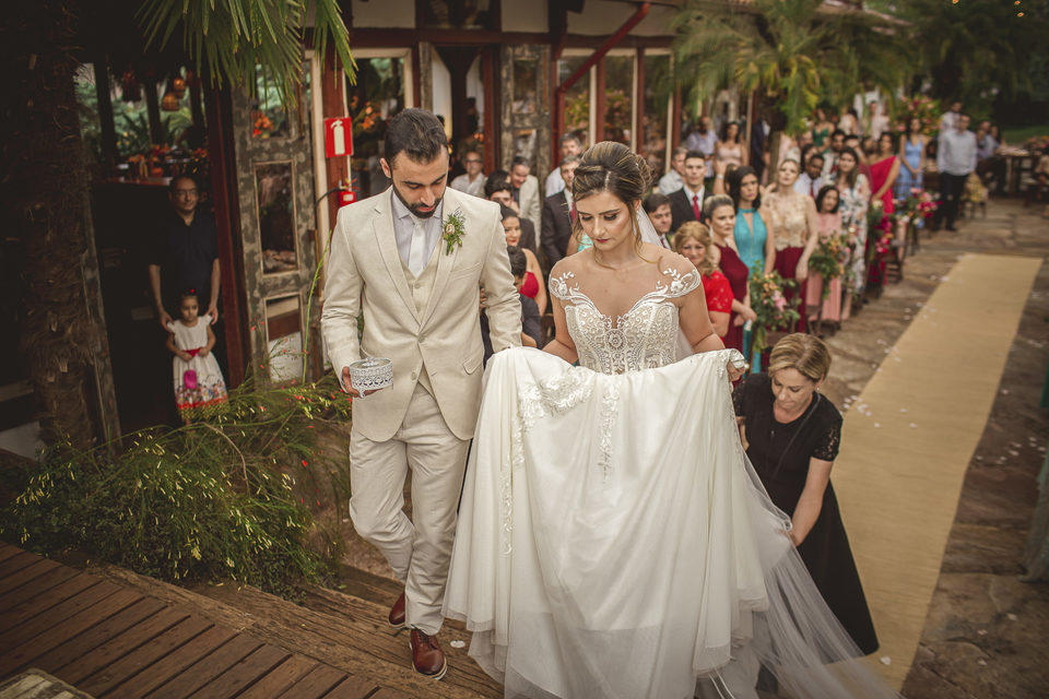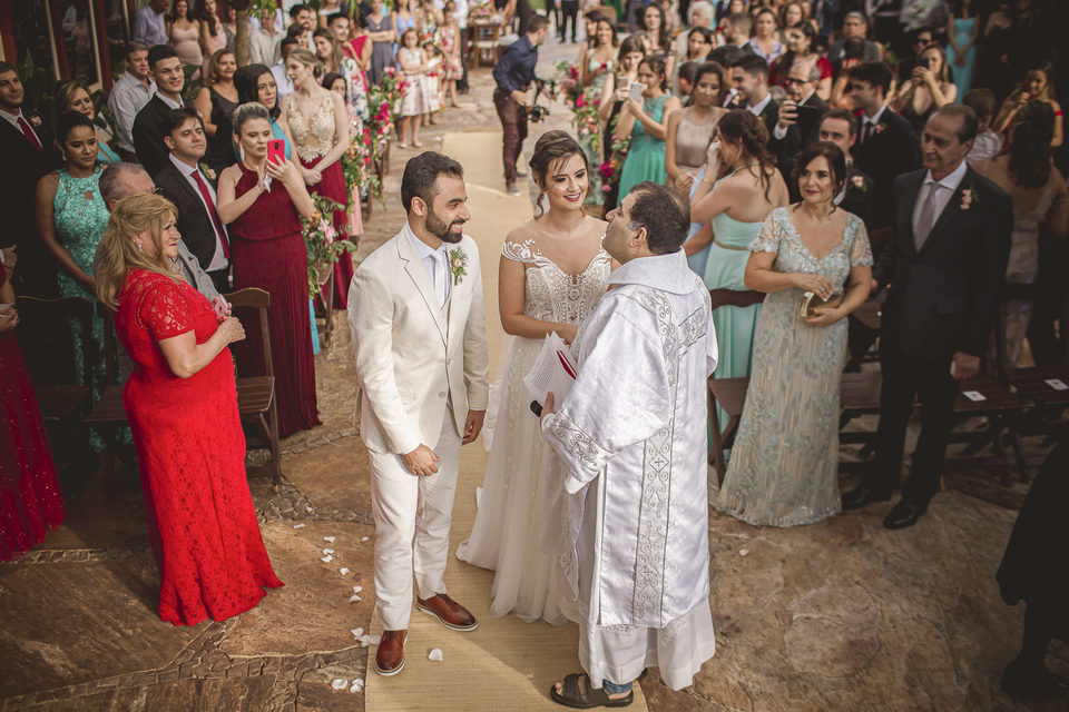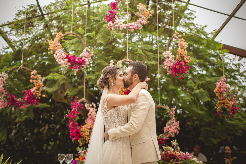 Foi exatamente essa palavra que resumiu o casamento da Rayra e do Matheus. O dia amanheceu lindo, uma manhã ensolarada de céu azul. A Rayra se arrumou lá mesmo, no local da cerimônia que foi no Espaço província. Com sua irmã e mãe por perto, elas fizeram com que este momento fosse memorável, descontraído e de belas risadas espontâneas. Tomaram seu espumante no jardim e caminharam para bater um papo enquanto apreciavam o vestido da noiva pendurado na paisagem de uma das jaboticabeiras. Neste momento além de registrar ela, aproveitamos para fotografar a decoração de casamento que ficou impecável, mas calma, vocês já vão ver nas fotos.