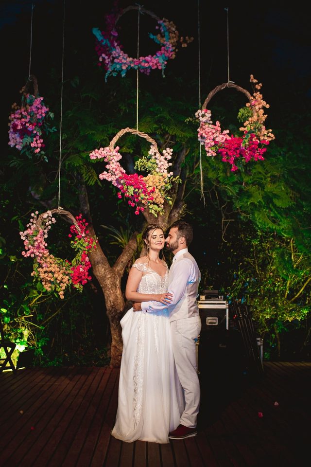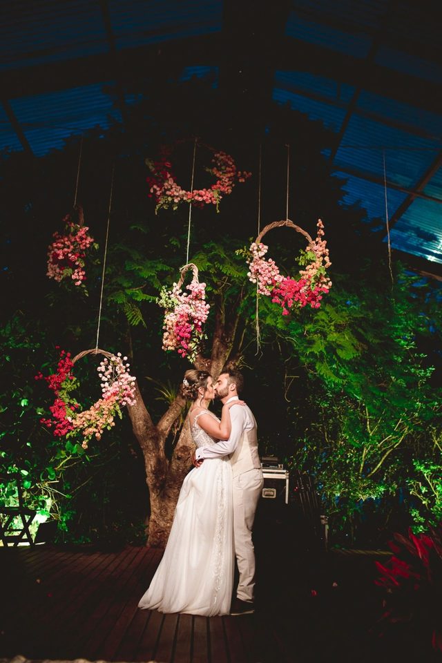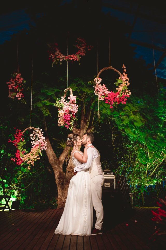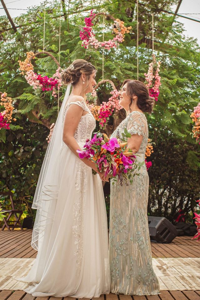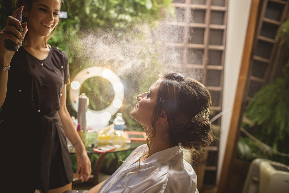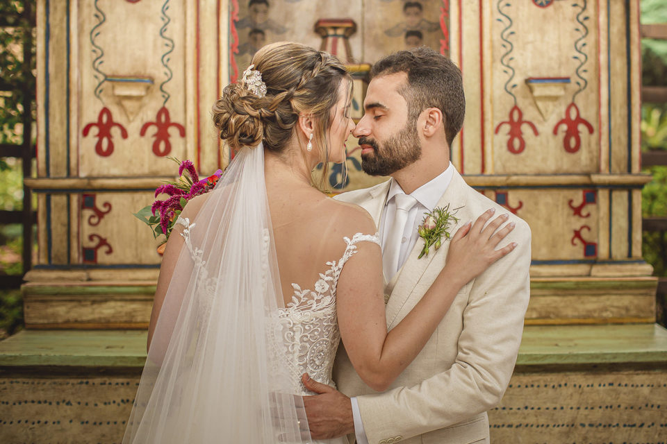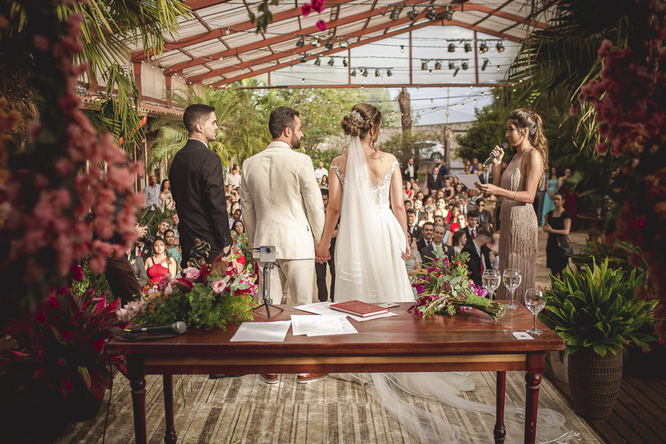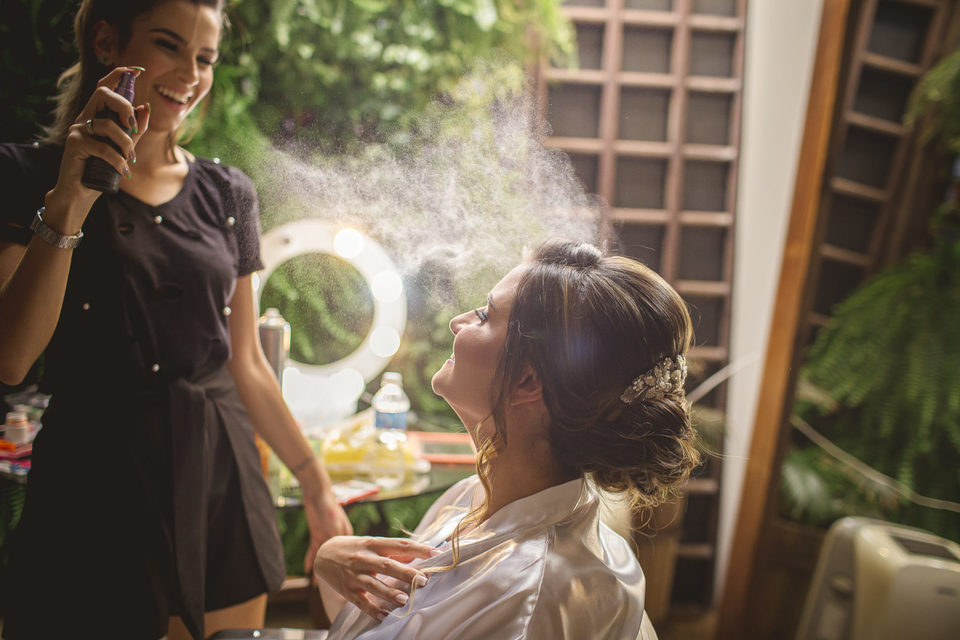 Foi exatamente essa palavra que resumiu o casamento da Rayra e do Matheus. O dia amanheceu lindo, uma manhã ensolarada de céu azul. A Rayra se arrumou lá mesmo, no local da cerimônia que foi no Espaço província. Com sua irmã e mãe por perto, elas fizeram com que este momento fosse memorável, descontraído e de belas risadas espontâneas. Tomaram seu espumante no jardim e caminharam para bater um papo enquanto apreciavam o vestido da noiva pendurado na paisagem de uma das jaboticabeiras. Neste momento além de registrar ela, aproveitamos para fotografar a decoração de casamento que ficou impecável, mas calma, vocês já vão ver nas fotos.