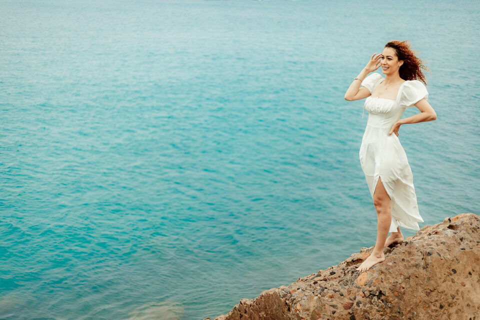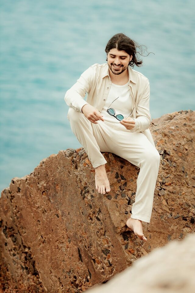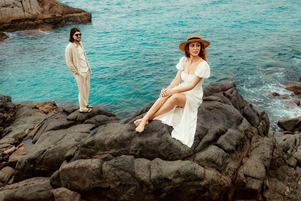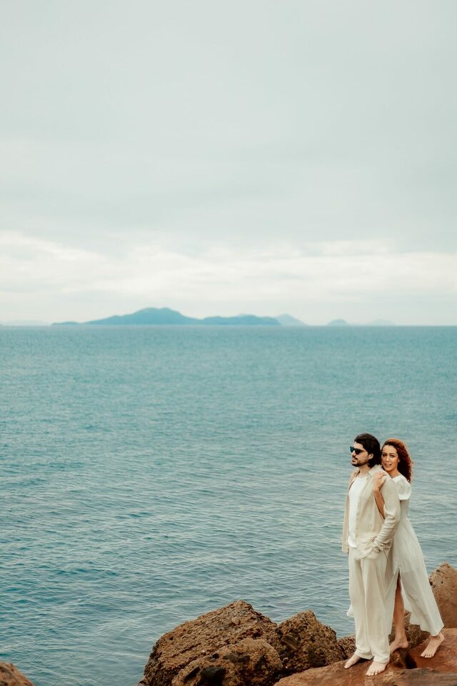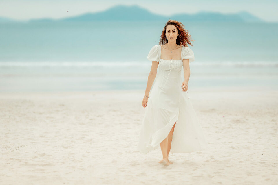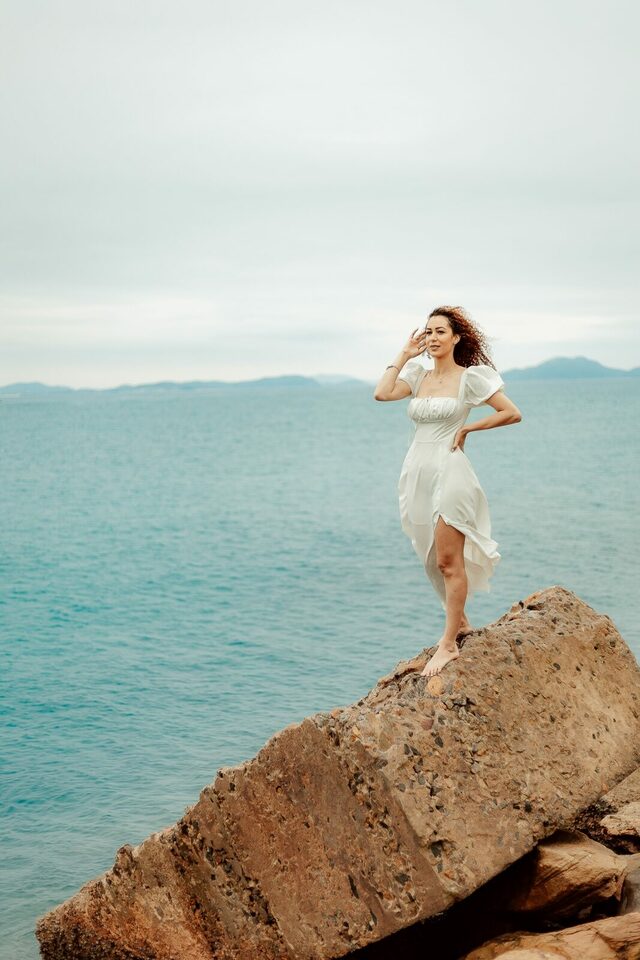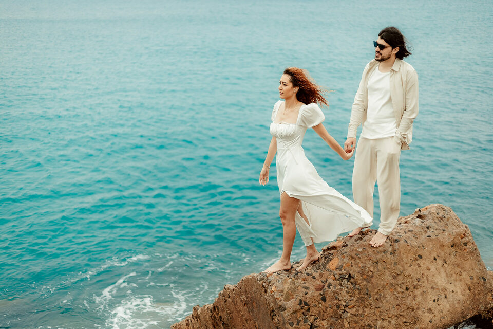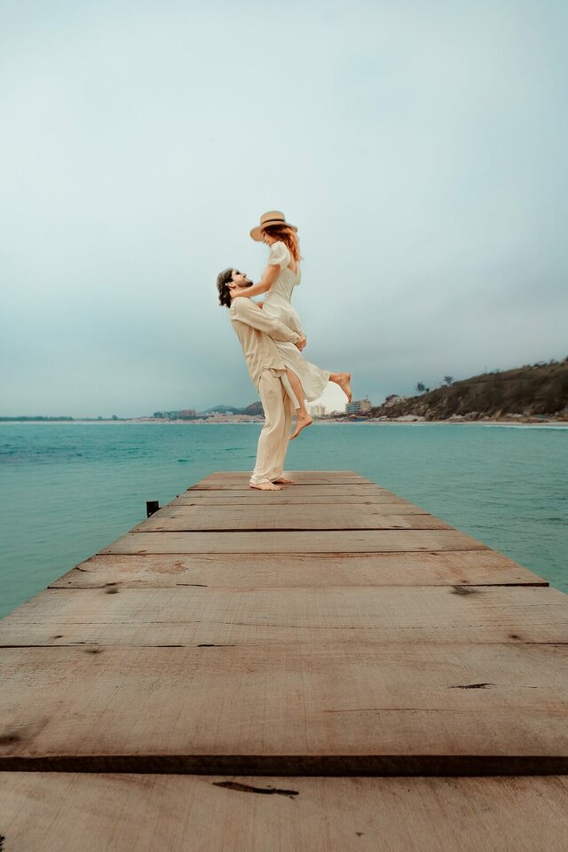 Roupas e acessórios: Escolha roupas e acessórios que combinem com a praia. Roupas leves, soltas e fluidas funcionam bem em uma sessão de fotos na praia. Evite roupas muito justas ou pesadas.