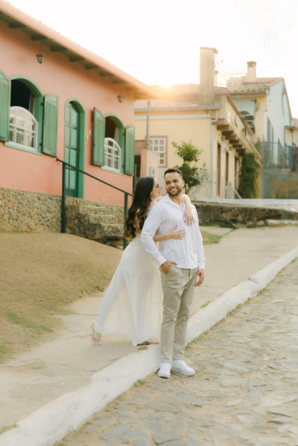 O charme das ruas estreitas, das igrejinhas coloniais e dos restaurantes aconchegantes criam um clima de romance perfeito para fotos espontâneas e apaixonadas.