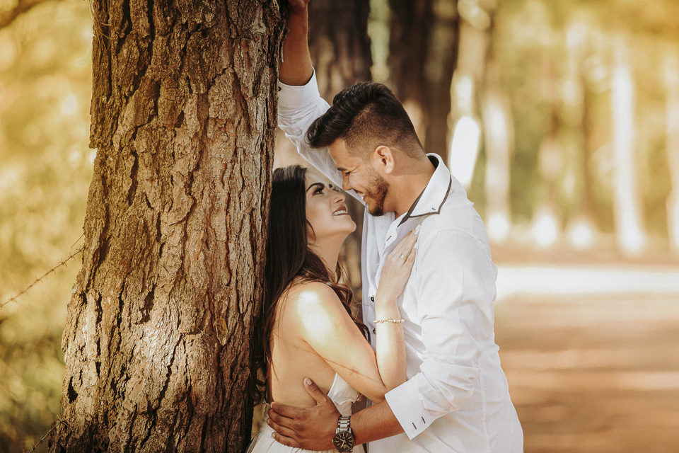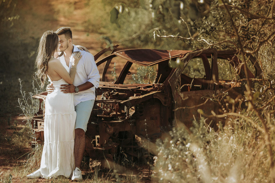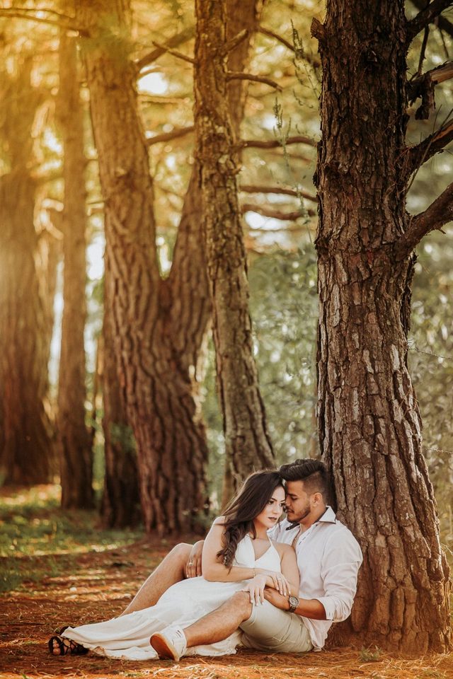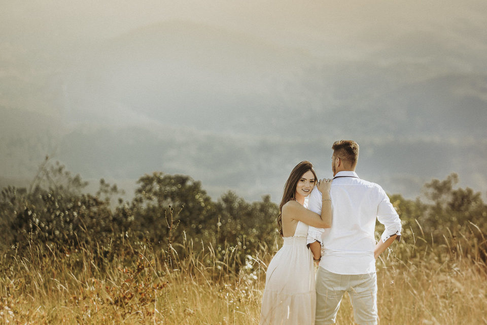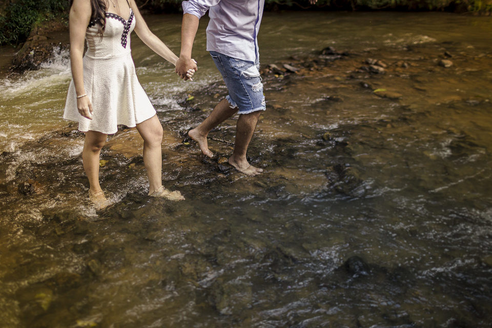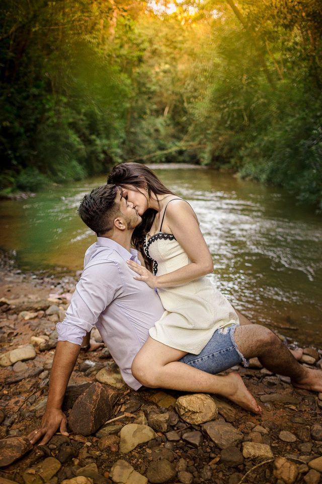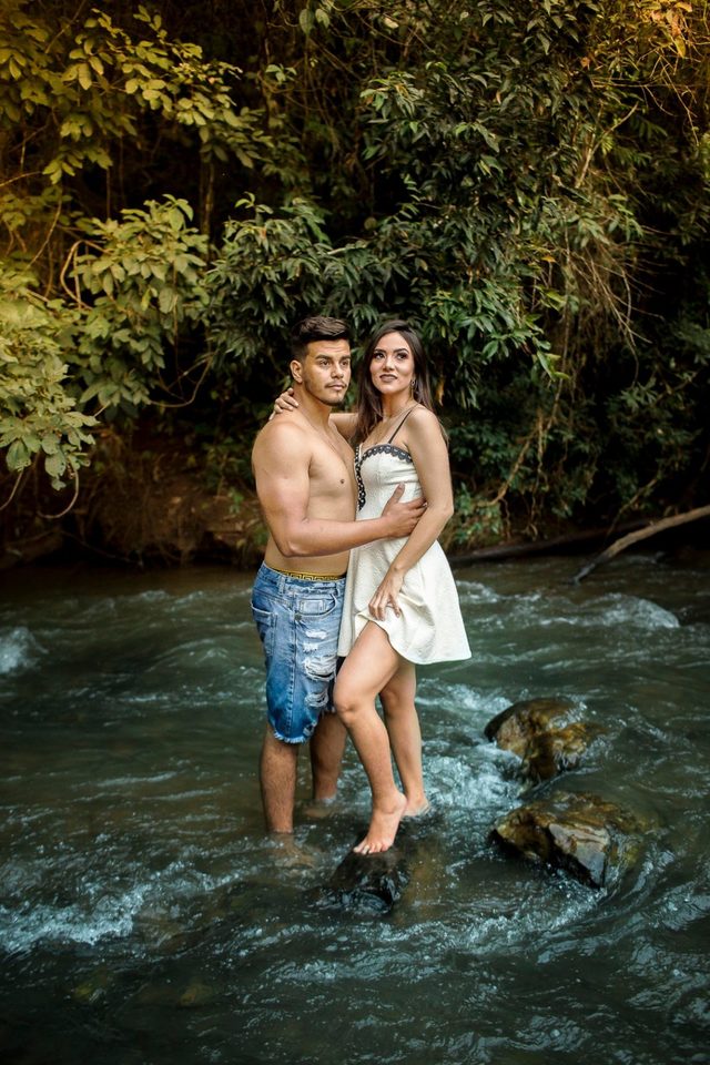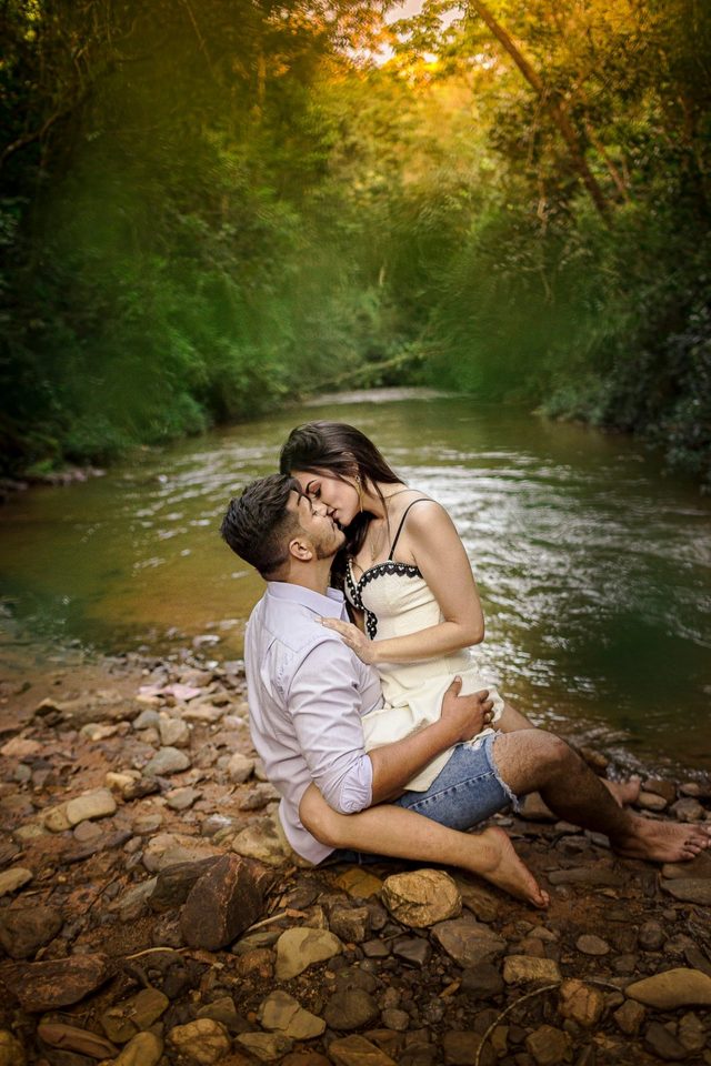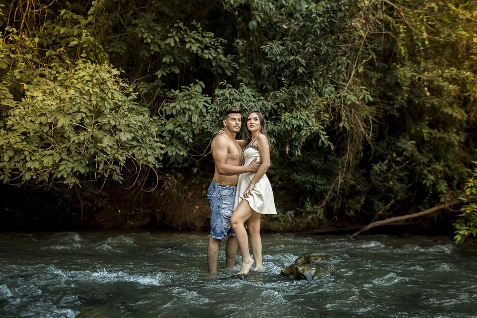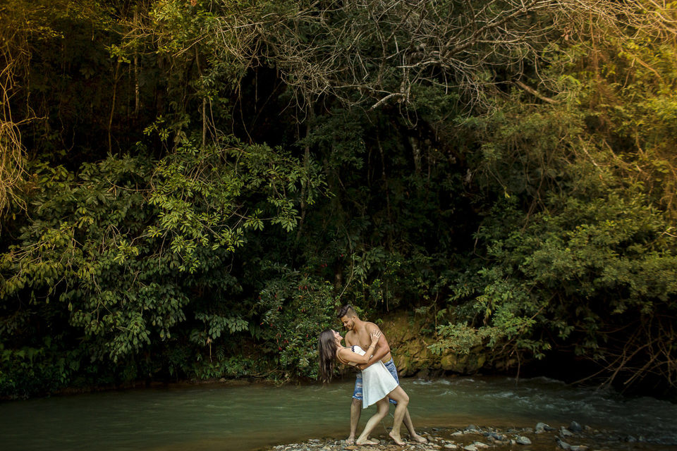 Somos um pouco diferentes, sou mais festeira e ele mais caseiro, mas tudo se equilibrou e sempre deu certo. Já passamos por várias dificuldades e desentendimentos, mas com certeza o propósito de tudo isso foi nos fortalecer e nos dar certeza que sempre queremos estar um ao lado do outro. Também temos muitas coisas em comum, além da profissão, amamos a natureza, mirantes, cachoeiras, trilhas, mato e praia. E esse foi um dos motivos que nos fez escolher fazer nosso ensaio fotográfico em Macacos, por ser um lugar que nos representa, cheio de natureza com muita água e verde. E este local para ensaio fotográfico também foi o primeiro lugar onde viajamos sozinhos, que fizemos a nossa primeira viagem para comemorar 2 anos de namoro. Desde então começamos a frequentar a cidade para ir em restaurantes, cachoeiras e andar atoa mesmo. E um outro detalhe, ficamos noivos também em Macacos - Mg. Ele me chamou para ir na cachoeira em um domingo e chegando lá ele fez o pedido, a água estava bem gelada e o dia estava frio, mas ele disse que o melhor lugar para fazer o pedido seria em uma cachoeira já que gostamos tanto, e ele tinha razão, foi lindo!