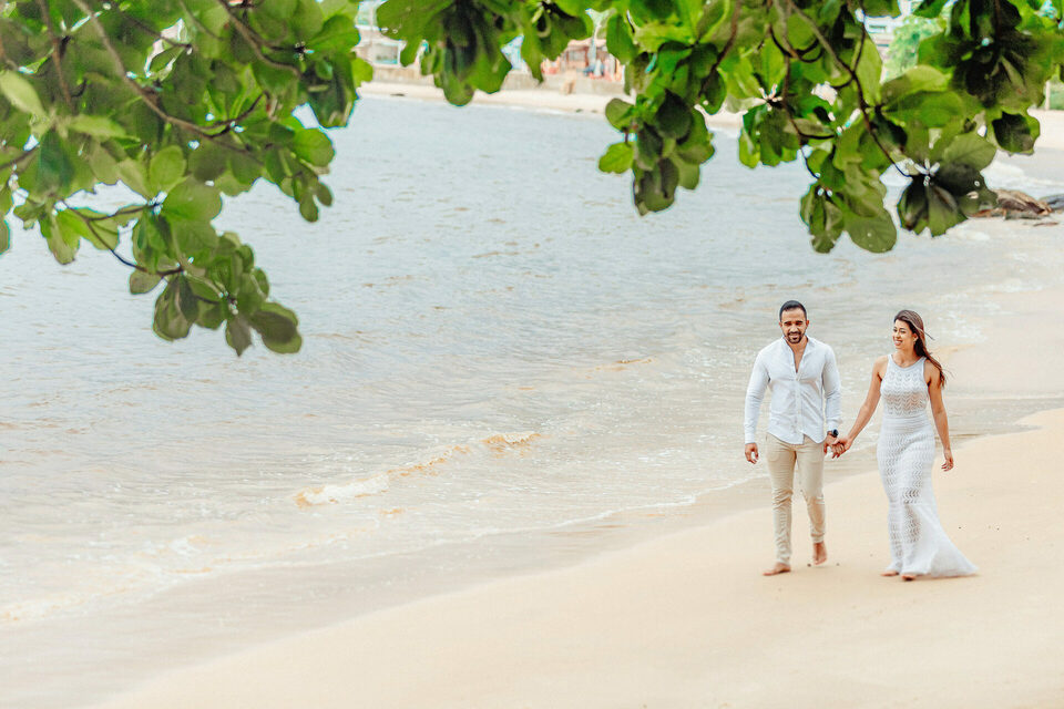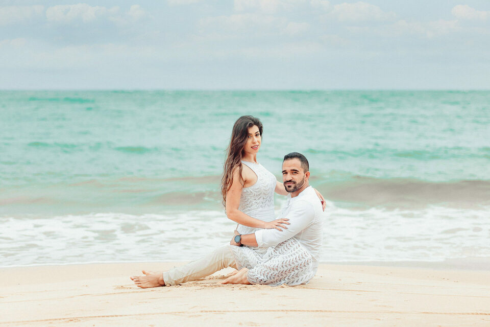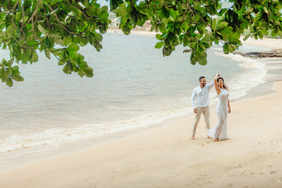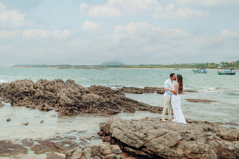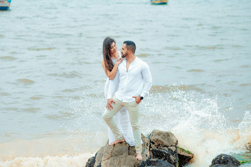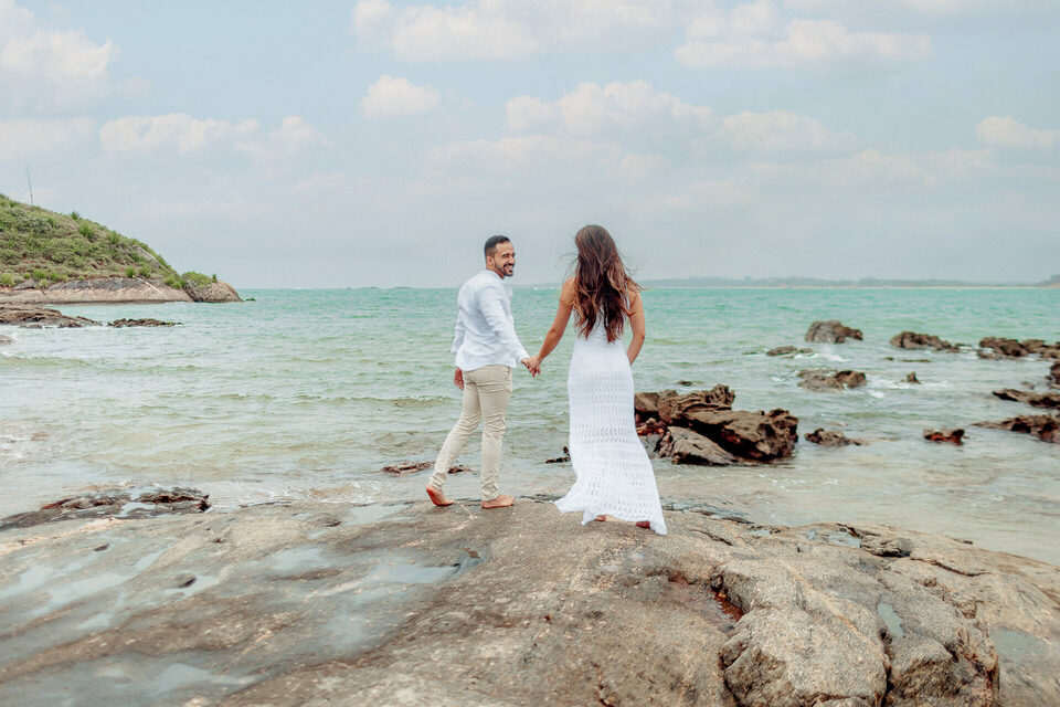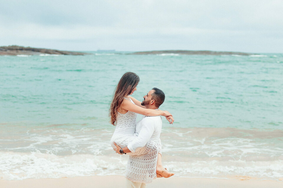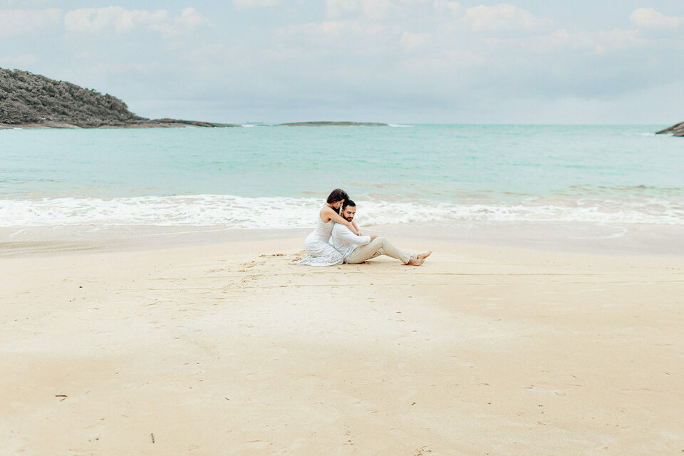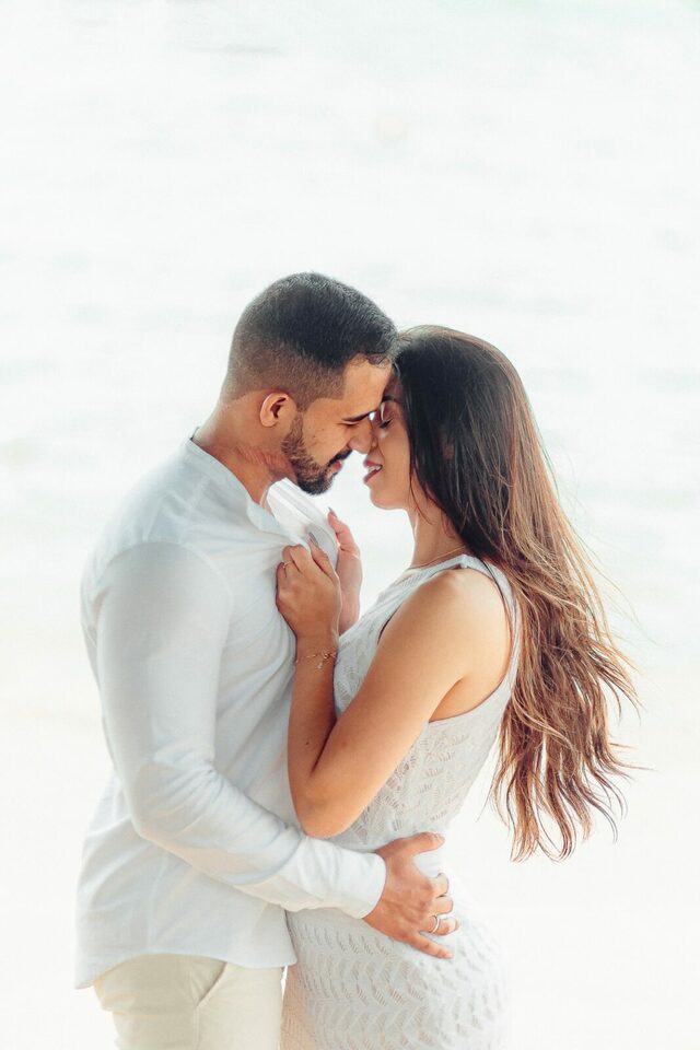 Começamos a bolar o ensaio deles, ja na reunião que nos conhecemos, acredite que ainda não havia nem um contrato assinado. Mas foi uma conexão tão legal, que a gente já fazia planos e falava sobre ideías sem nem mesmo estarmos com um acordo assinado. Eles são alegres, cheios de sorrisos e animação pra dar e vender. Então logo que surgiu o assunto da viagem, já passou um filme na minha cabeça, eu já os via correndo na beira do mar, com o evento balançando o cabelo dela, o Amaury a carregando, eles sorrindo, e aquela cena linda de filme passando pelo visor da tela da câmera. E pra ser sincero, foi muito mais lindo que imaginei. Pegamos paisagens incríveis, eles toparam tudo o que propomos com a maior humildade do mundo. Se lançaram de peito aberto no ensaio e se entregaram ao amor nessas fotos que transbordam sentimento.