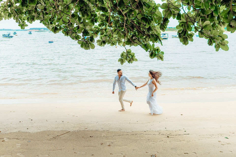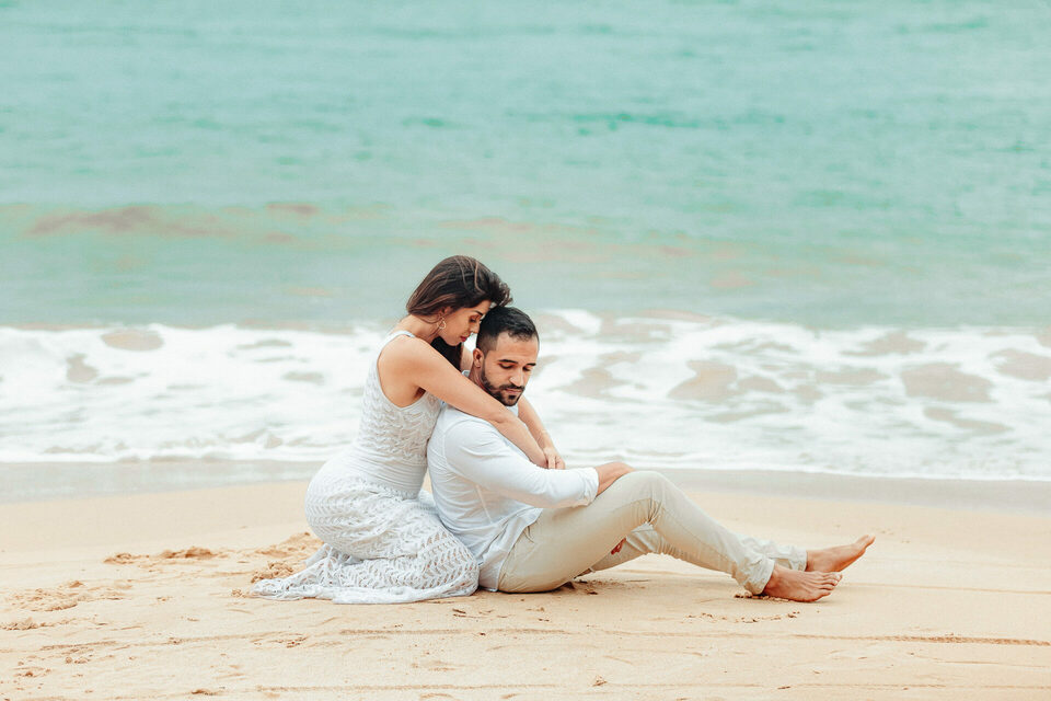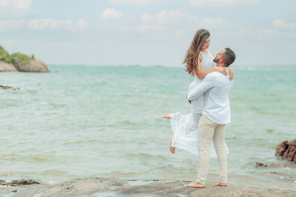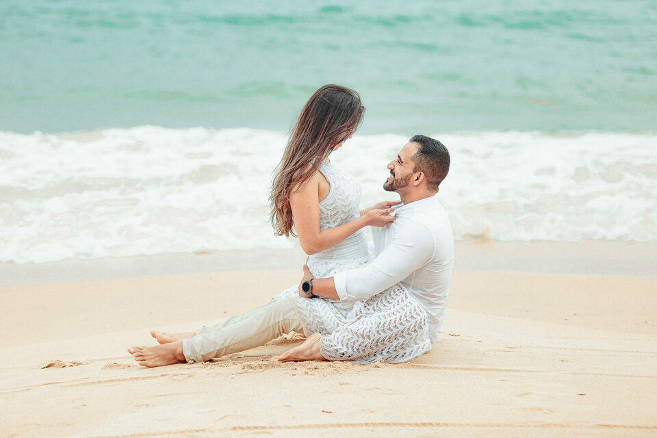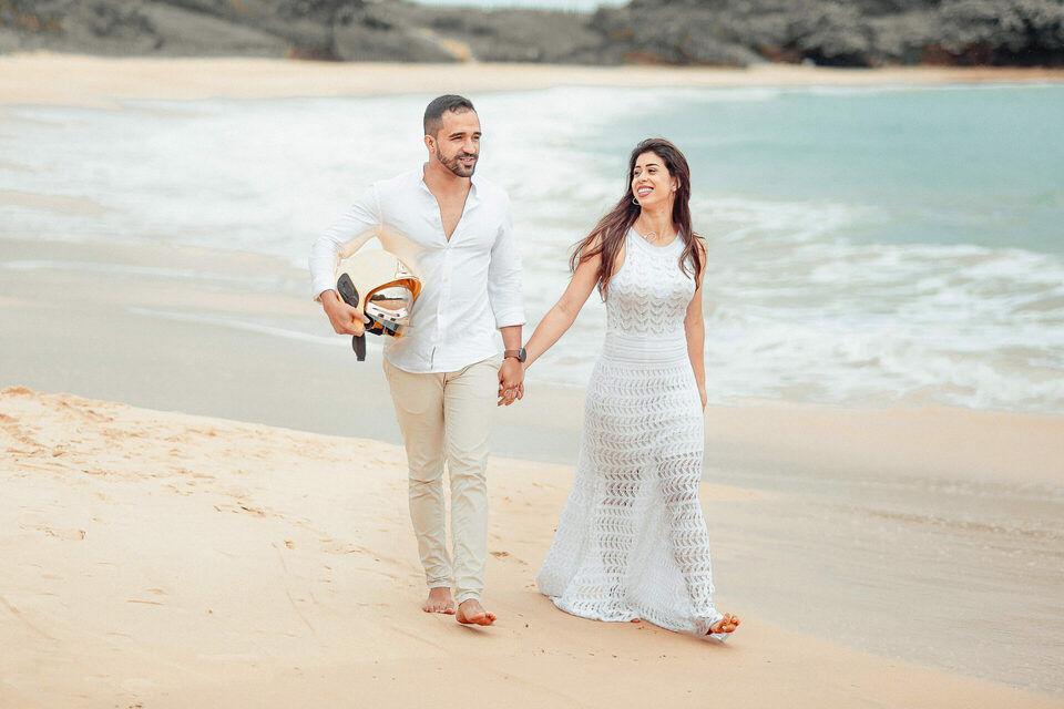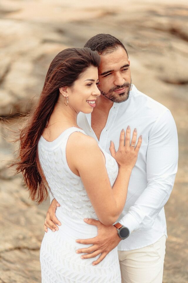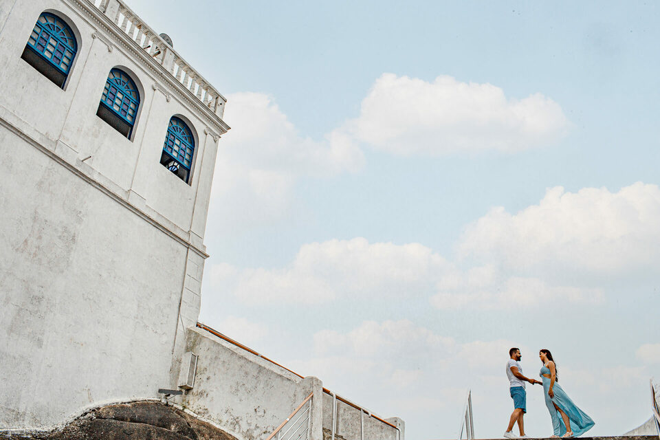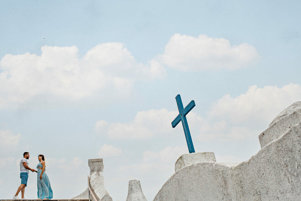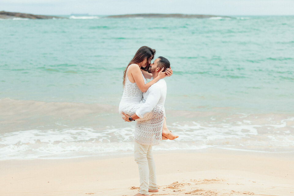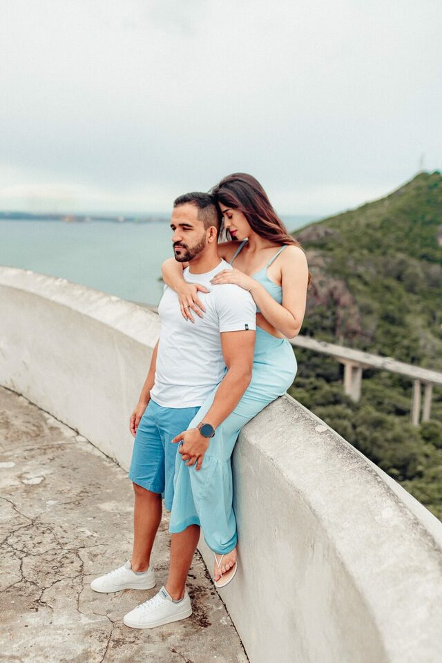 Começamos a bolar o ensaio deles, ja na reunião que nos conhecemos, acredite que ainda não havia nem um contrato assinado. Mas foi uma conexão tão legal, que a gente já fazia planos e falava sobre ideías sem nem mesmo estarmos com um acordo assinado. Eles são alegres, cheios de sorrisos e animação pra dar e vender. Então logo que surgiu o assunto da viagem, já passou um filme na minha cabeça, eu já os via correndo na beira do mar, com o evento balançando o cabelo dela, o Amaury a carregando, eles sorrindo, e aquela cena linda de filme passando pelo visor da tela da câmera. E pra ser sincero, foi muito mais lindo que imaginei. Pegamos paisagens incríveis, eles toparam tudo o que propomos com a maior humildade do mundo. Se lançaram de peito aberto no ensaio e se entregaram ao amor nessas fotos que transbordam sentimento.