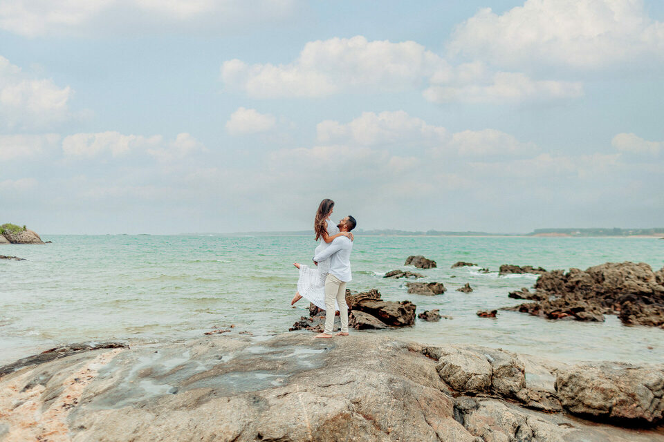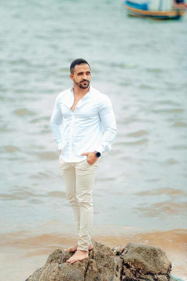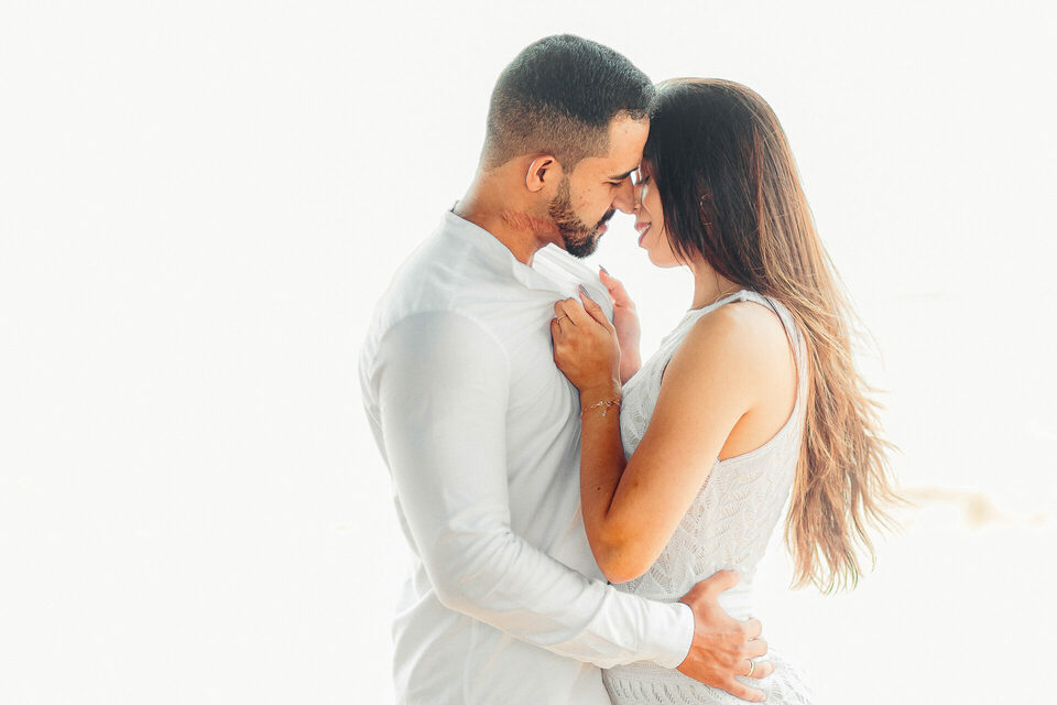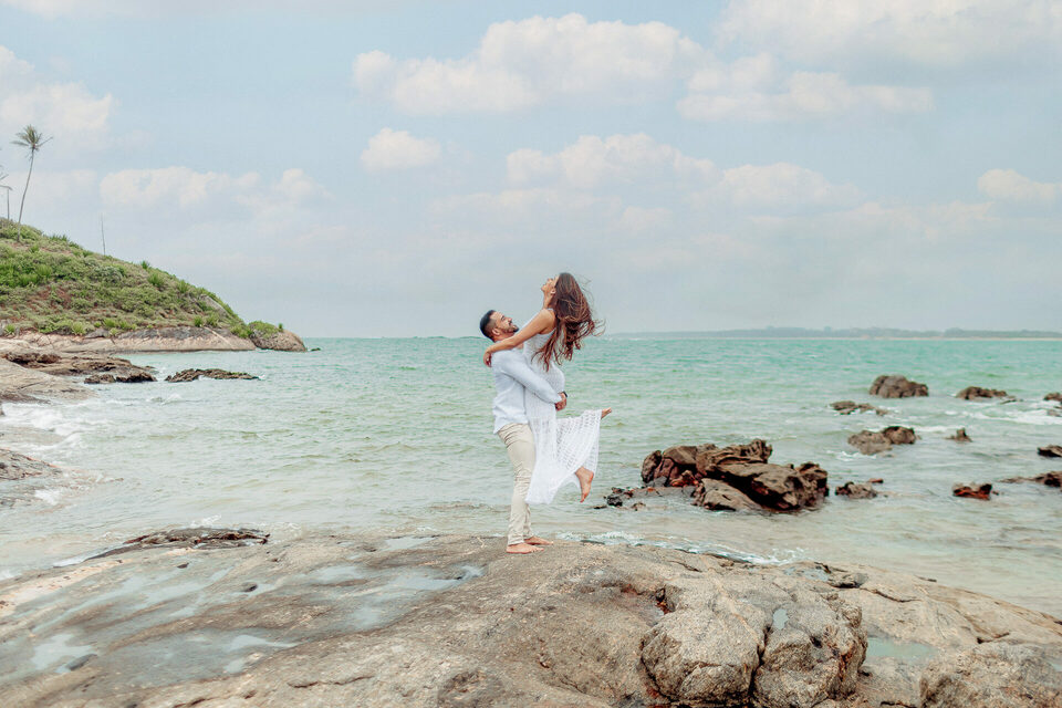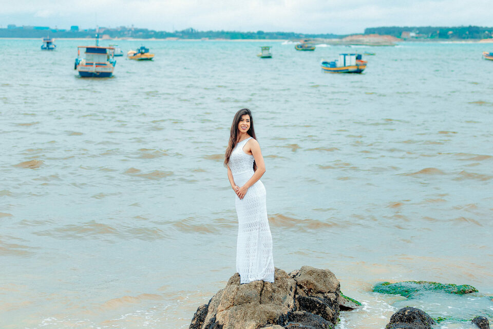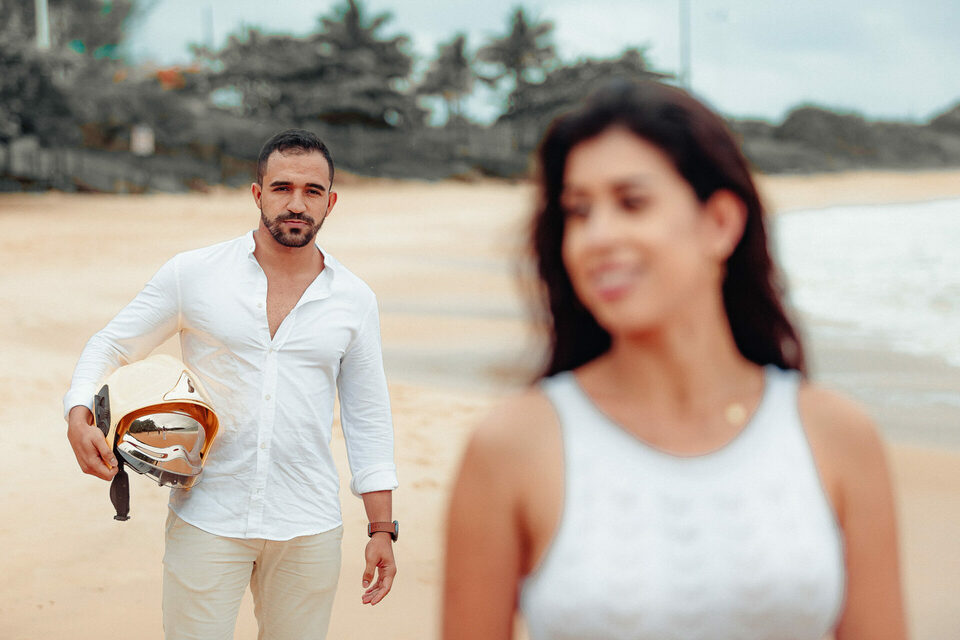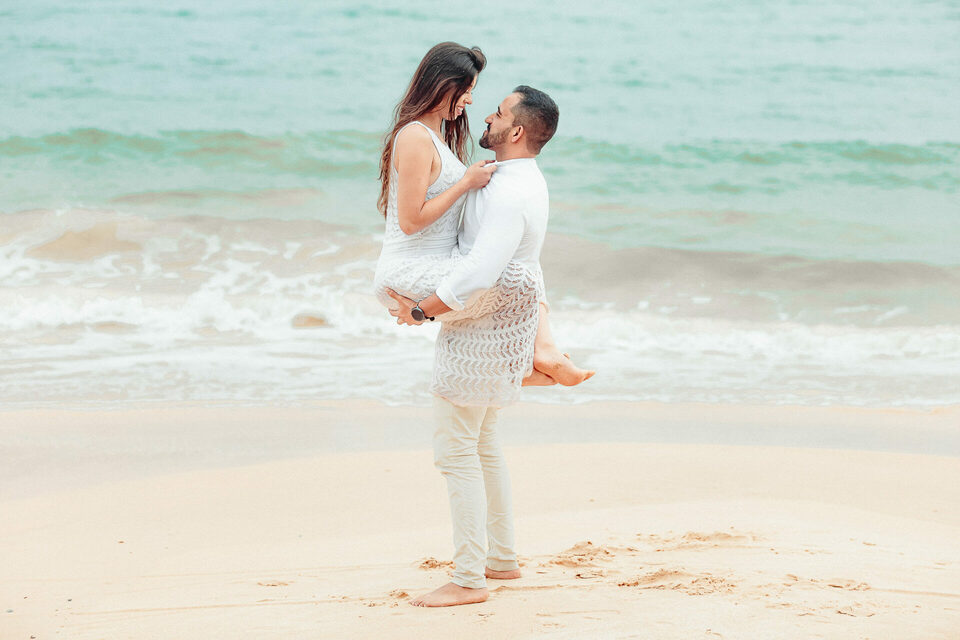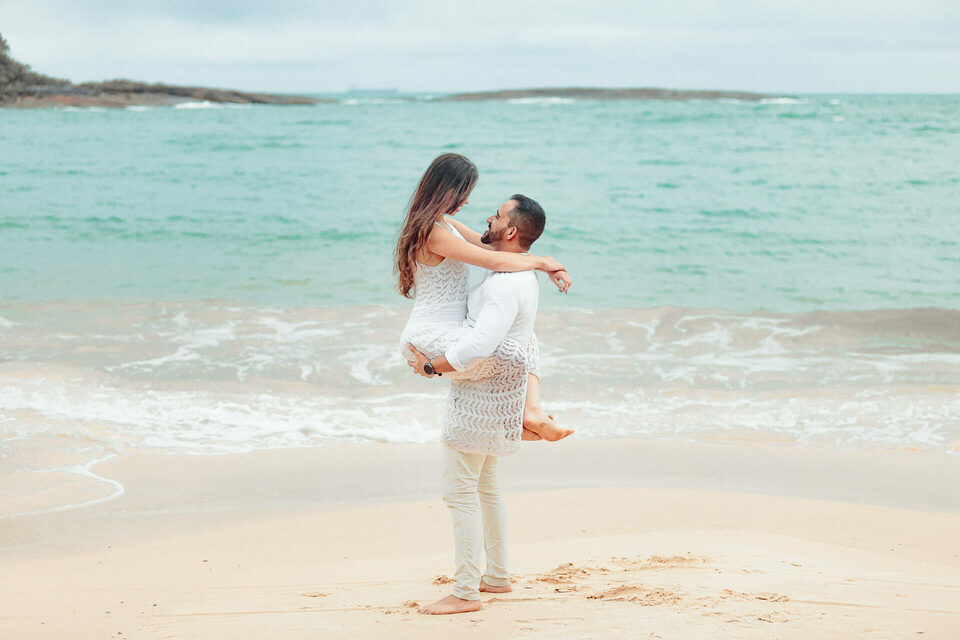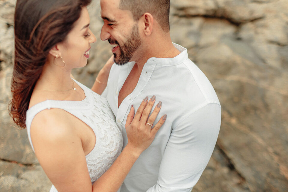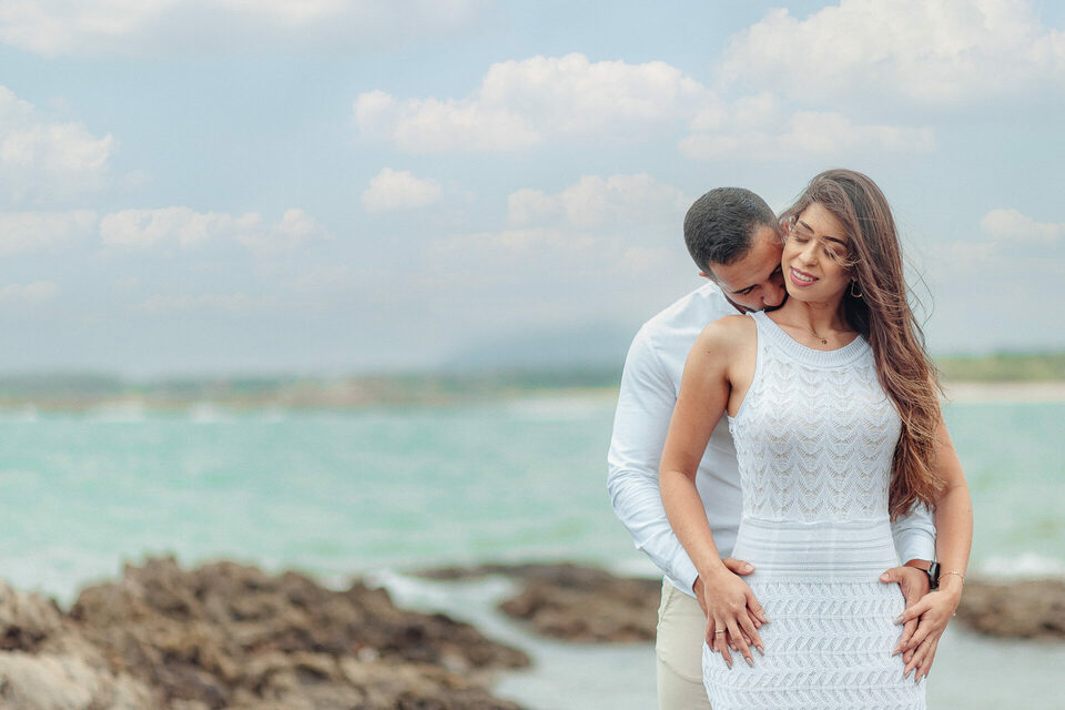 Começamos a bolar o ensaio deles, ja na reunião que nos conhecemos, acredite que ainda não havia nem um contrato assinado. Mas foi uma conexão tão legal, que a gente já fazia planos e falava sobre ideías sem nem mesmo estarmos com um acordo assinado. Eles são alegres, cheios de sorrisos e animação pra dar e vender. Então logo que surgiu o assunto da viagem, já passou um filme na minha cabeça, eu já os via correndo na beira do mar, com o evento balançando o cabelo dela, o Amaury a carregando, eles sorrindo, e aquela cena linda de filme passando pelo visor da tela da câmera. E pra ser sincero, foi muito mais lindo que imaginei. Pegamos paisagens incríveis, eles toparam tudo o que propomos com a maior humildade do mundo. Se lançaram de peito aberto no ensaio e se entregaram ao amor nessas fotos que transbordam sentimento.
