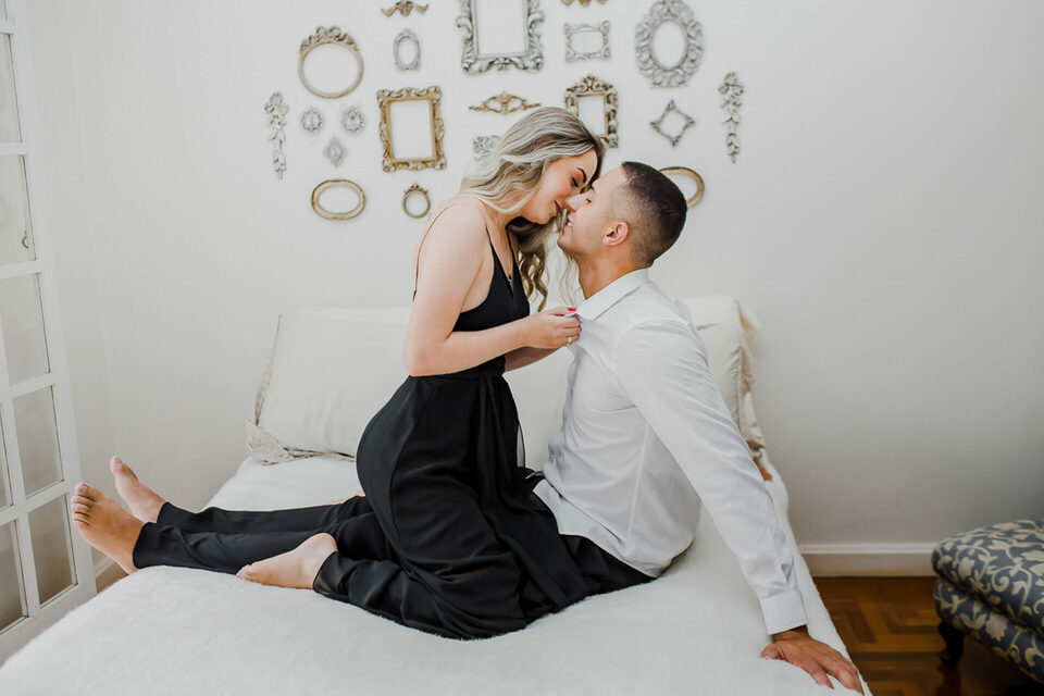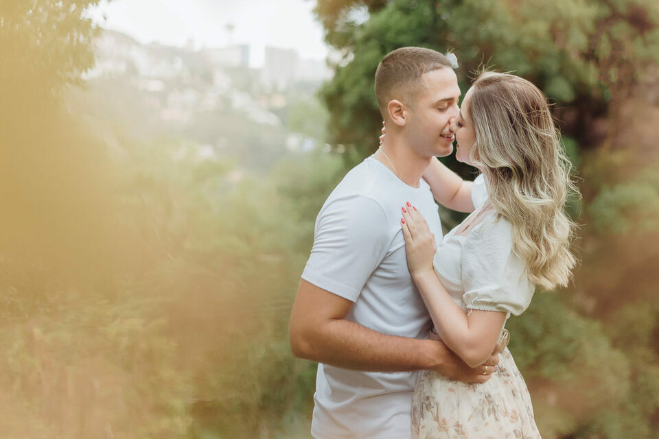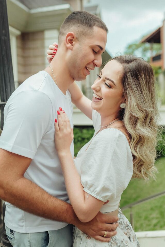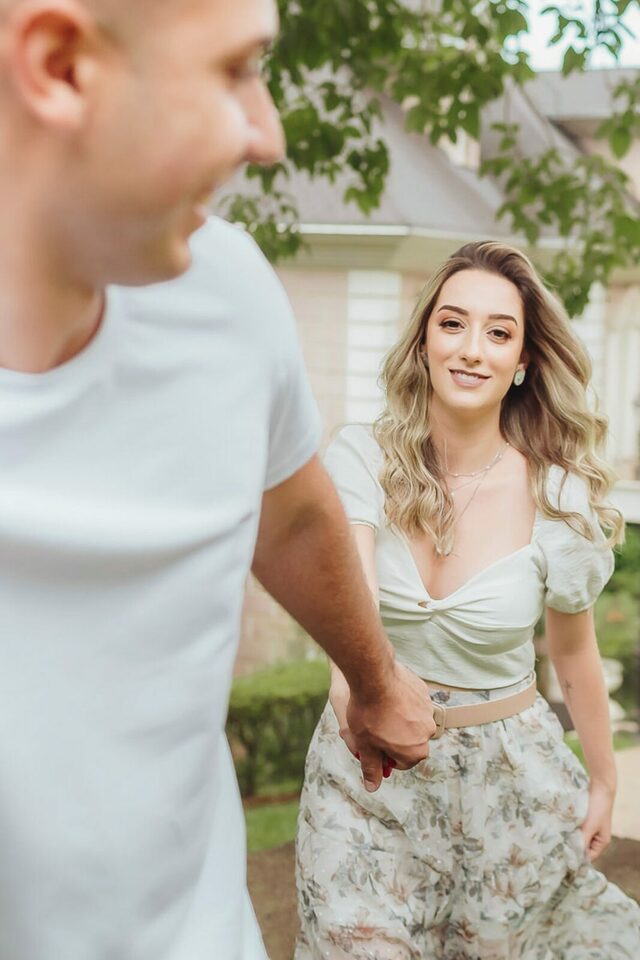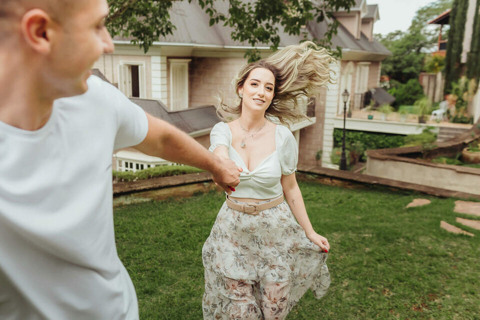 Começamos com algumas brincadeiras de girar, de dançar para tentar extrair a essência deles de forma natural, quebrando logo o clima e fazendo com que eles ficassem bem leves e tivesse uma confiança maior no nosso trabalho a ponto de se abrirem e serem espontâneos. Não foi nem um pouco dificil, a Bia é muito alegre e brincalhona, apesar de aparentar ser muito reservada. Já o Henrique é sério, mas de riso muito fácil. Um casal lindo e cheios de carinho um para com o outro. O Henrique gosta das cores vivas, já a Bia é se encanta mais com o estilo mais clássico e leve. Então tentei fazer de uma forma que fosse leve e agradável aos dois, sem fujir da nossa identidade e estilo fotográfico.