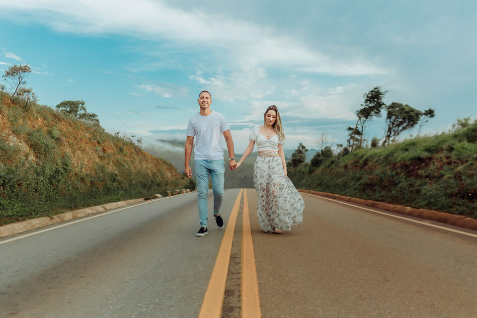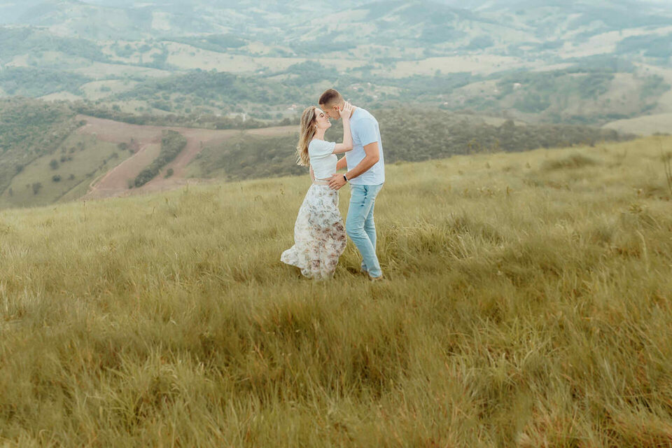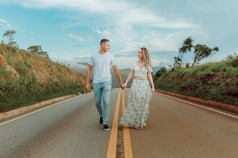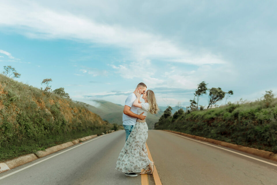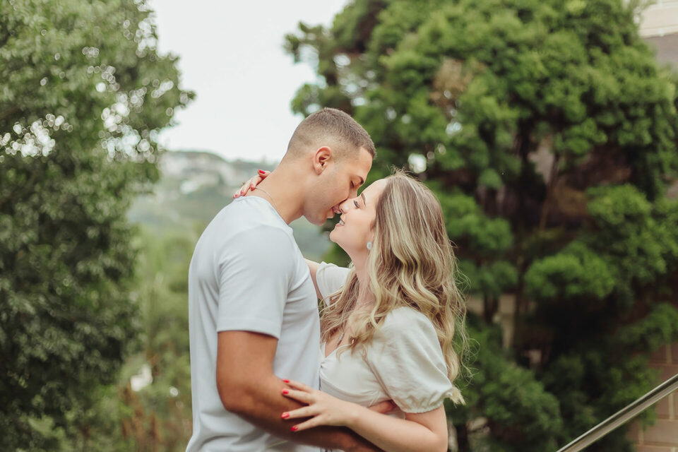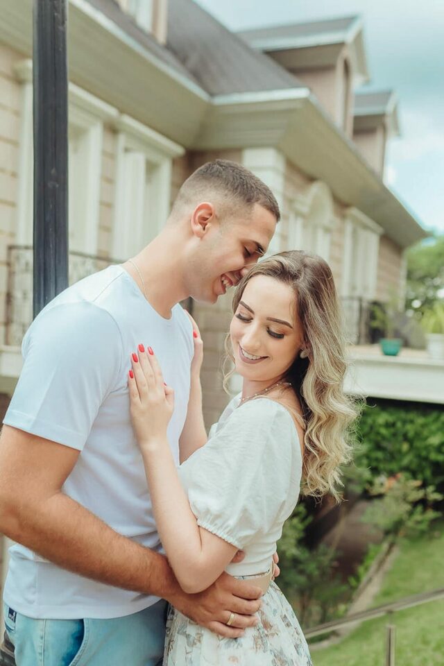 Começamos com algumas brincadeiras de girar, de dançar para tentar extrair a essência deles de forma natural, quebrando logo o clima e fazendo com que eles ficassem bem leves e tivesse uma confiança maior no nosso trabalho a ponto de se abrirem e serem espontâneos. Não foi nem um pouco dificil, a Bia é muito alegre e brincalhona, apesar de aparentar ser muito reservada. Já o Henrique é sério, mas de riso muito fácil. Um casal lindo e cheios de carinho um para com o outro. O Henrique gosta das cores vivas, já a Bia é se encanta mais com o estilo mais clássico e leve. Então tentei fazer de uma forma que fosse leve e agradável aos dois, sem fujir da nossa identidade e estilo fotográfico.
