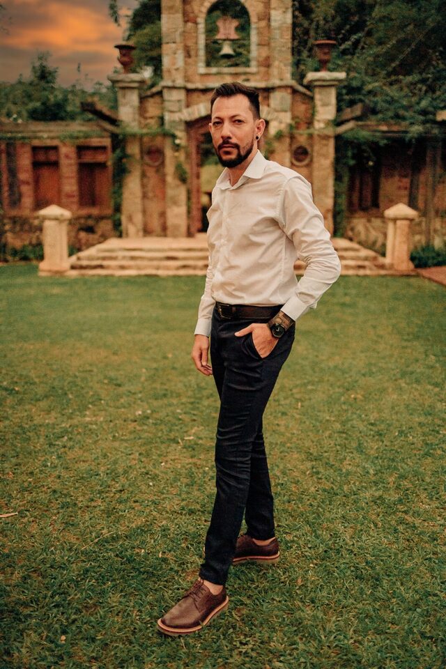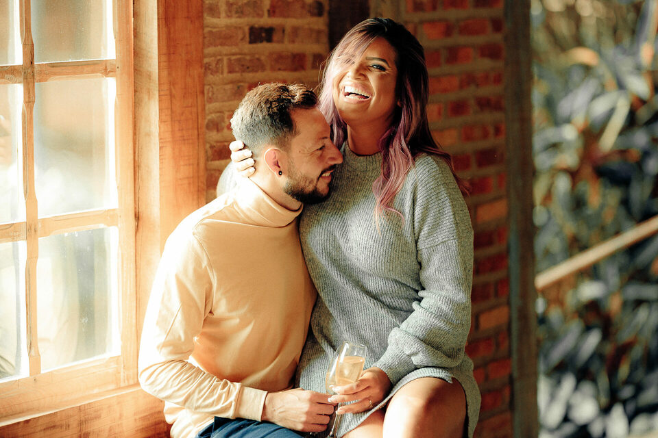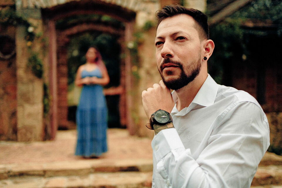 Já o Athos é parecido ( pensou que eu ia falar o contrário né, que eles eram opostos? kkk ). O Athos é alto astral, cheio de amigos, sempre que o vejo tá com a vibe boa e sorrindo. um cara mil, daqueles jogadores caros marrentos que todo mundo quer por perto. Você vê ali também nas tatoos, no alargador e na forma de se vestir e portar, que é um cara pouco preocupado com a opinião dos outros, mas muito preocupado em ser feliz e fazer a Camila feliz. Inclusive, falando sobre felicidade, eu queria contar uma coisa pra vocês. Ele pediu ela em casamento ensaio ( foi o segundo pedido deles ). O primeiro ele me contou que foi meio falhado, mas dessa vez foi 100%, com lágrimas, joelhos no chão, sorrisos, e muuuuuito, eu disse muuuuuuuito afeto.
