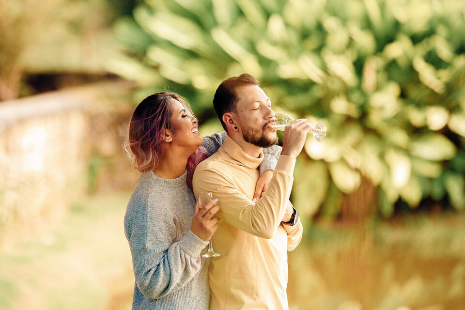 Foi na Fazenda Quinzeiro, na cidade de Moeda - MG. Um cenário lindo, escolhido a dedo por eles para que pudessemos fazer esses registros lindos que vocês vão ver a seguir. A idéia do vinho trás um pouco do que eles mais gostam, e também foi uma desculpinha para se soltarem e dançarem, afinal os dois são tiktokers. As poses e cenas foram construídas no intuíto de mostrar Felicidade e Amor, as duas palavras que mais tentei com que fosse o contexto do ensaio deles. ( Lembrando que a Fazenda Quinzeiro é uma das nossas indicações de melhores locais para ensaios de fotos ).