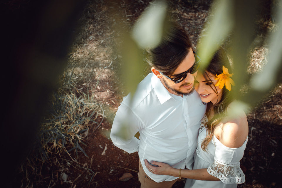 No dia fez sol, já era pouco mais de 11 horas da manhã, a luz não era a melhor para a fotografia, mas mesmo assim conseguimos registros incríveis deste momento. A escolha do que usar no ensaio fotográfico, roupas, acessórios, ficou por conta da Ariane. Que não decepcionou e optou por tons claros para os dois. Junto com a paisagem do lugar, não teve erro. Ficou leve e harmonioso, um book de casal lindo de se ver. Cheio de charme.