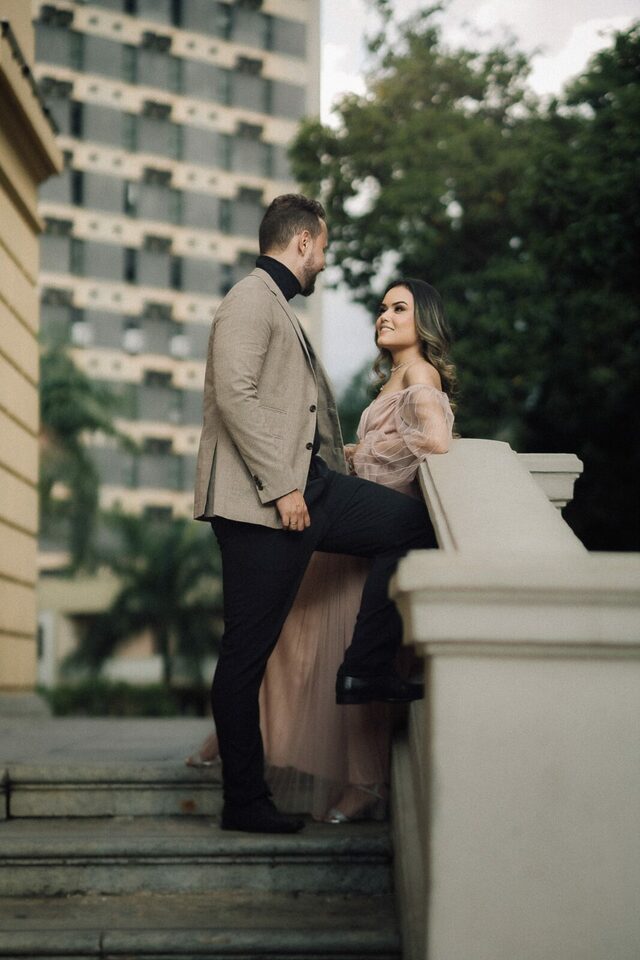Antes de mergulharmos nas particularidades da Praça da Liberdade, vamos entender o que é um ensaio fotográfico urbano. Diferente dos tradicionais ensaios em estúdio, o ensaio urbano utiliza a cidade como cenário principal. Ruas, praças, edifícios, grafites e outros elementos da paisagem urbana se transformam em cenários para as fotos, criando imagens autênticas e cheias de personalidade. Ideal para você que busca por fotos de casamento em Belo Horizonte.